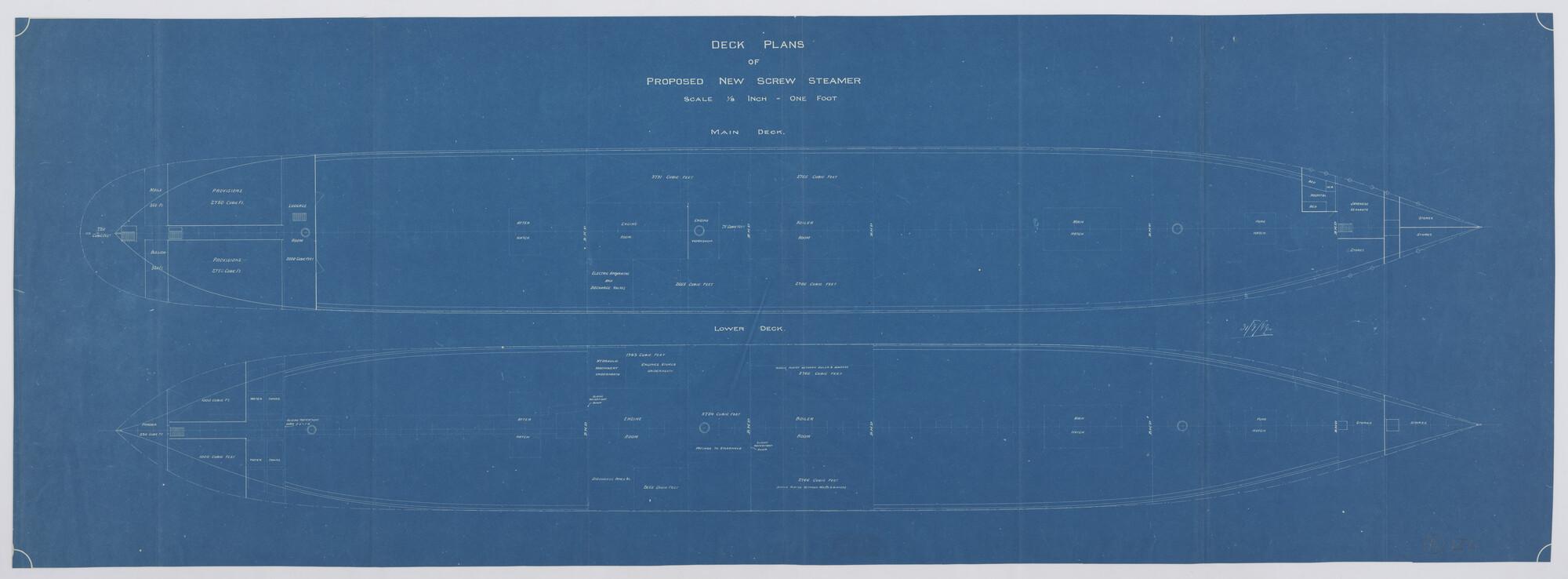 Indeling hoofddek en benedendek van een onbekend schroefstoomschip.