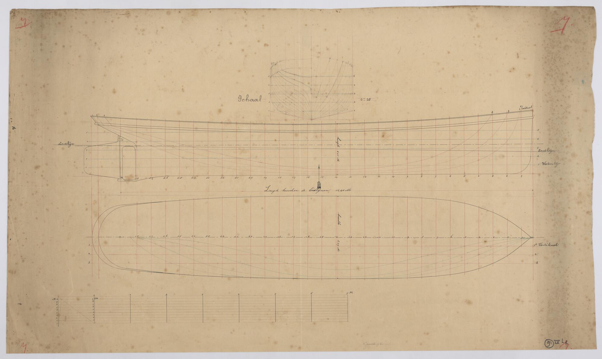 Lijnenplan en spantenraam van een stoomschip, 1894