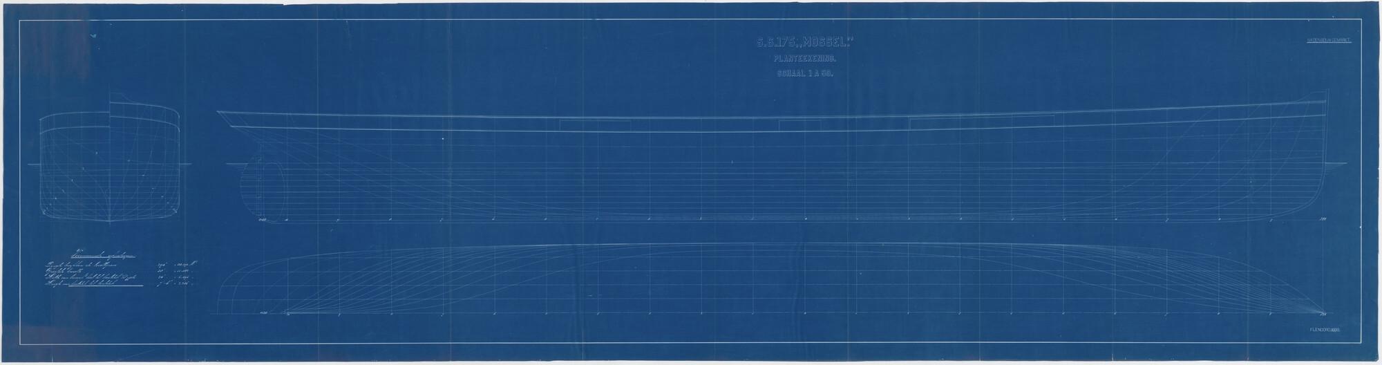 Het vrachtschip ss. "Mossel" van de Koninklijke Paketvaart-Maatschappij. Lijnenplan.