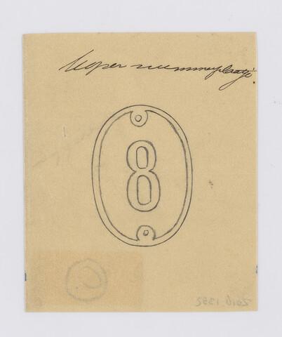 Ontw. plaatje: "8" voor de vracht- en passagiersschepen ss. "De Carpentier" en het ss. "Van Diemen" van de Koninklijke Paketvaart-Maatschappij.