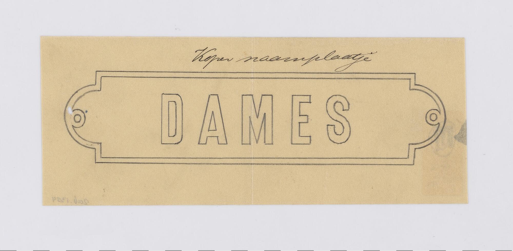 Ontw. plaatje: 'Dames' voor de vracht- en passagiersschepen ss. "De Carpentier" en het ss. "Van Diemen" van de Koninklijke Paketvaart-Maatschappij.
