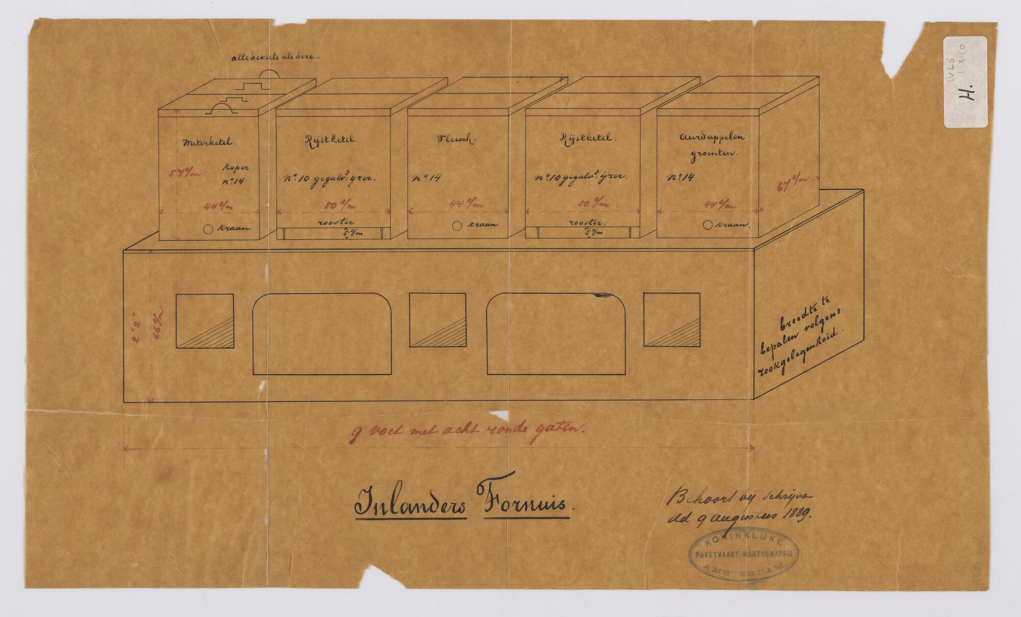 Inlander fornuis voor de vracht- en passagiersschepen ss. De Carpentier en het ss. Van Diemen van de Koninklijke Paketvaart-Maatschappij.