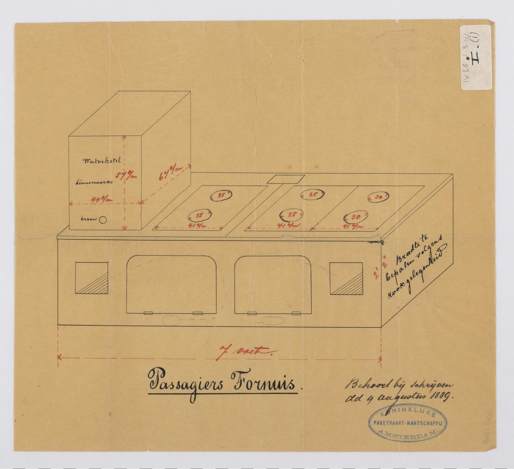 Passagiers fornuis voor de vracht- en passagiersschepen ss. De Carpentier en het ss. Van Diemen van de Koninklijke Paketvaart-Maatschappij.