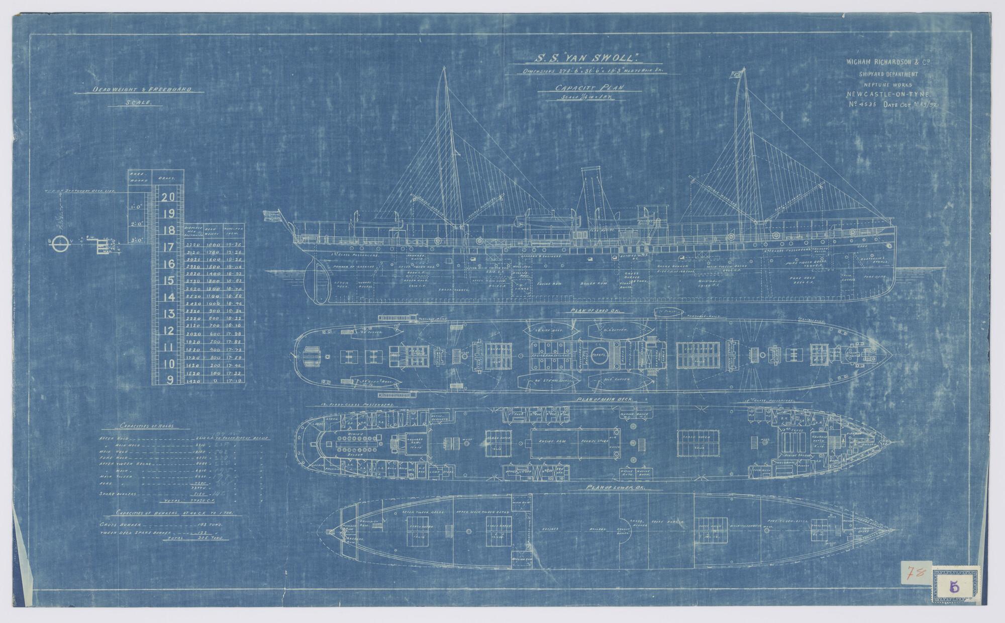 Algemeen plan van het vracht- en passagiersschip ss. Van Swoll van de Koninklijke Paketvaart-Maatschappij.