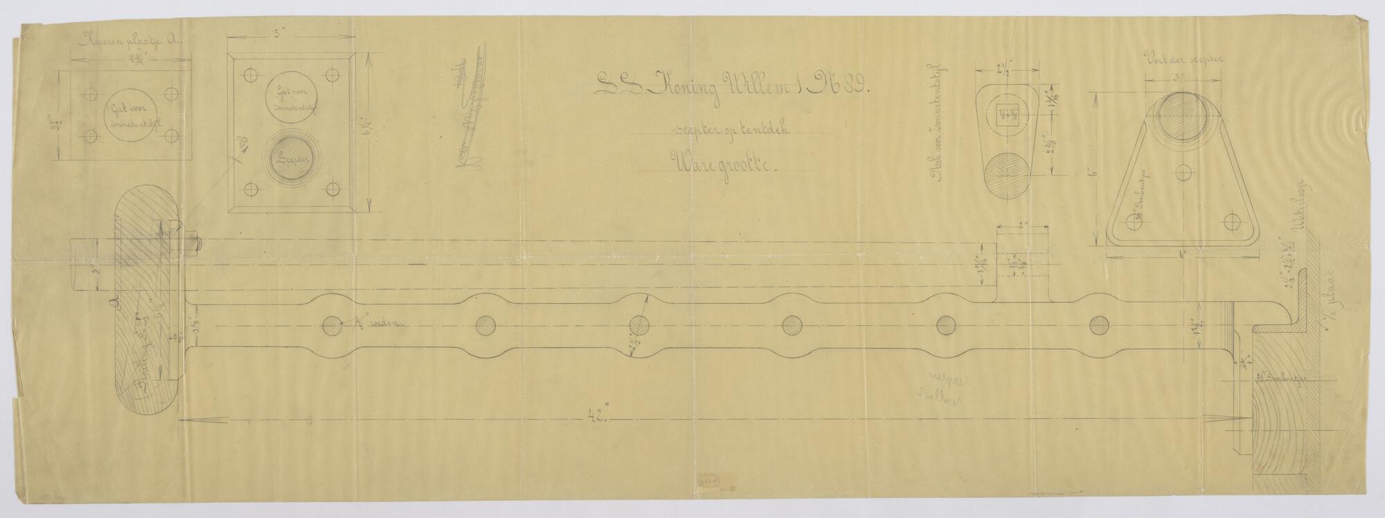 Het passagiersschip ss. "Koning Willem I" van de Stoomvaart-Maatschappij "Nederland" (SMN). Scepters op tentdek.