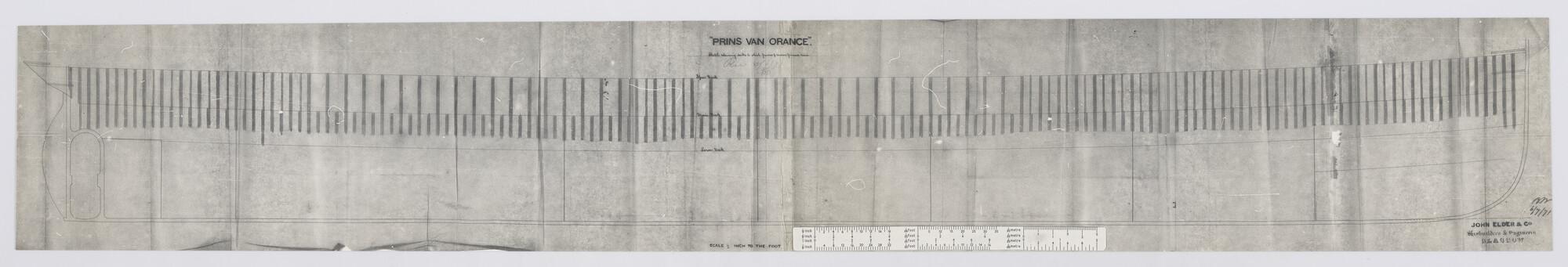 Verticale langsdoorsnede van het passagiersschip ss. "Prins van Oranje", 1871.