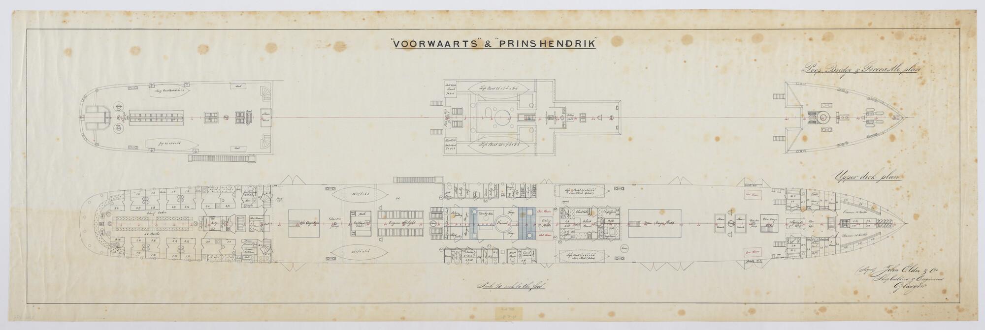 Het passagiersschip met hulpzeilvermogen ss. "Voorwaarts" van de Stoomvaart-Maatschappij "Nederland" (SMN). Tentdek, brugdek, bakdek en bovendek.