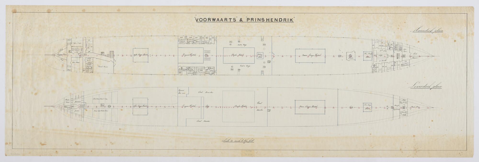 Het passagiersschip met hulpzeilvermogen ss. "Voorwaarts" van de Stoomvaart-Maatschappij "Nederland" (SMN). Hoofd en benedendek.