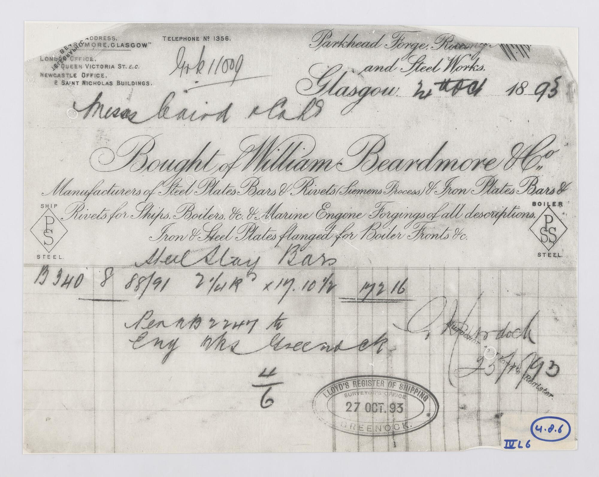 Het passagiersschip ss. "Insulinde" van de Stoomvaart-Maatschappij "Nederland" (SMN). Rekening voor stalen balken.