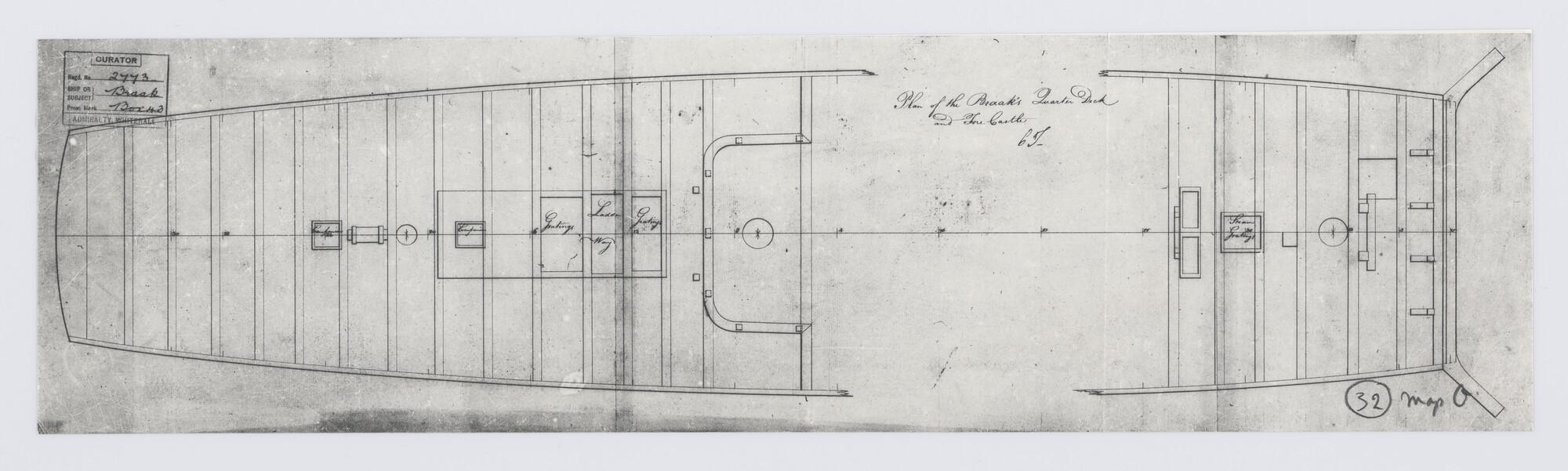 Oorlogsschip "Braak". Achterdek ("quarterdeck") and vooronder ("forecastle").