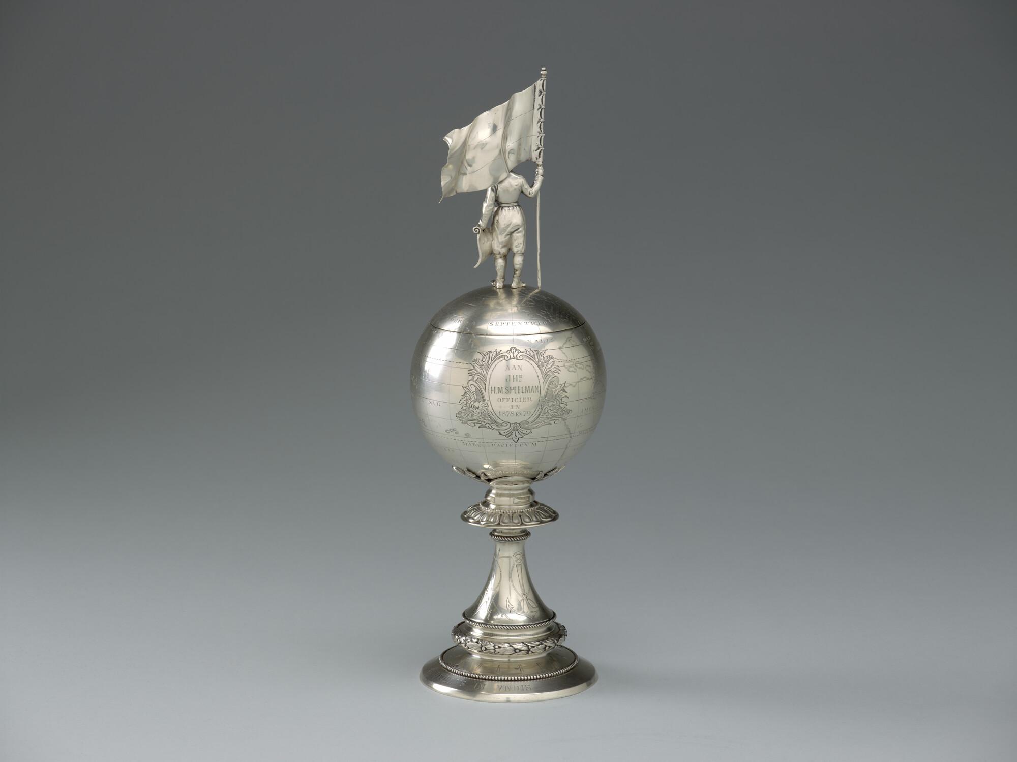 Willem Barents beker, uitgereikt door de Vereniging Willem Barents aan luitenant-ter-zee jonkheer H.M. Speelman, officier op de poolschoener "Willem Barents" tijdens de reizen in 1878 en 1879.