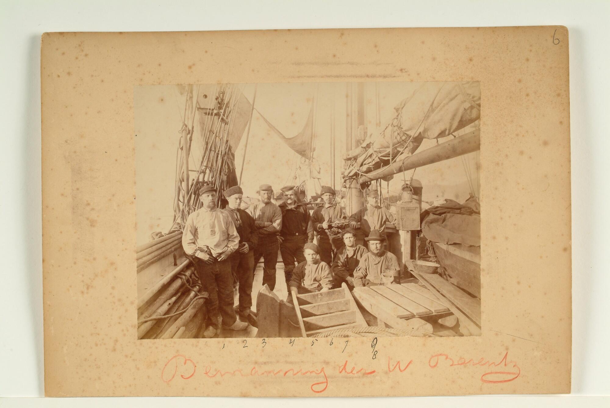 De Vierde Noordpoolexpeditie met de schoener Willem Barents naar Nova Zembla in 1881: groepsportret van de bemanning.