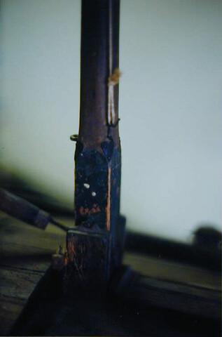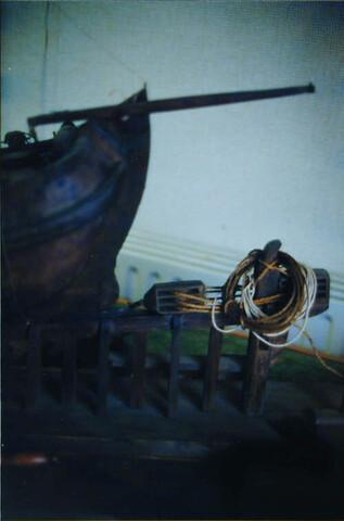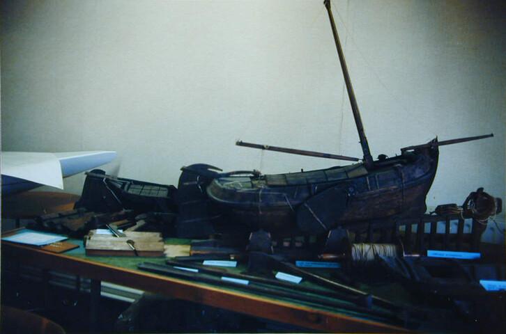 Getuigd model van een turftjalk op een sleephelling. Een houten schip moest regelmatig de werf op om geteerd en gebreeuwd te worden. Met behulp van een lange houten slee die de werfbaas onder het schip bond werd de tjalk met een kaapstnader op de helling getrokken, die goed met vet was ingesmeerd. Houten 'mosterdpotten' zorgden ...