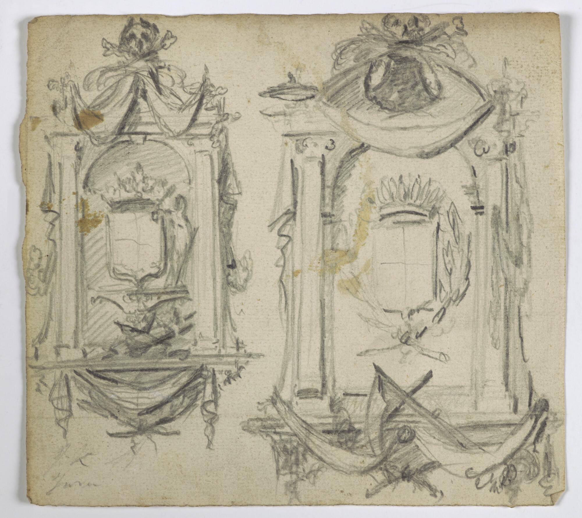 Schetsen van twee wapenschilden.