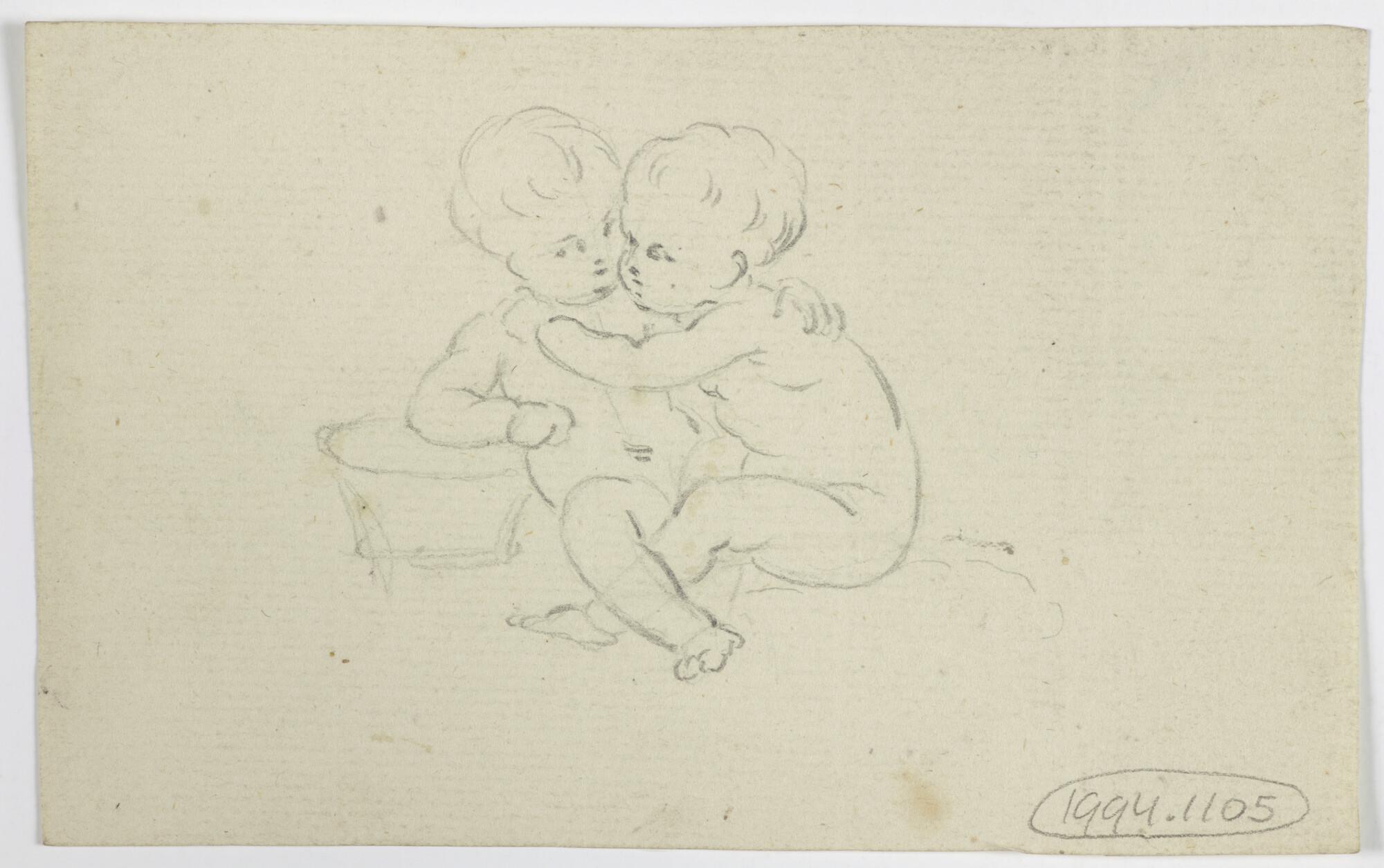 Schetsje van twee kinderfiguurtjes bij een teil.