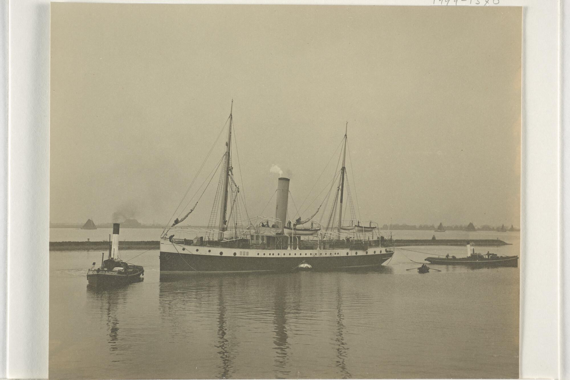 Het ss. "Brouwer" op sleeptouw door stoomsleepboten van Rutgers Sleepdienst (Amsterdam)