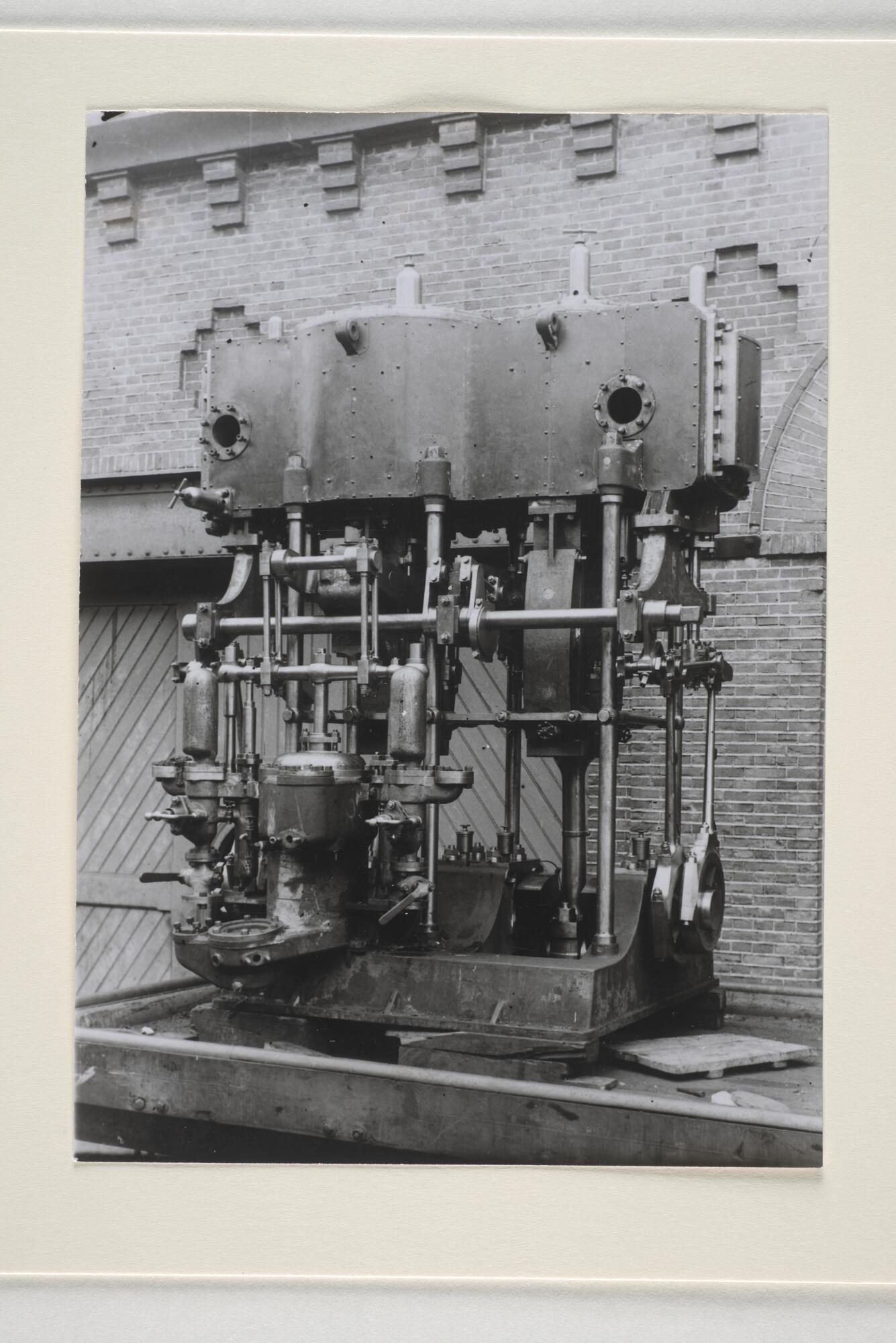 De 3 cilinder compound stoommachine voor het ss. Van der Parra van de Koninklijke Paketvaart-Maatschappij opgesteld bij de fabriek van de Koninklijke Maatschappij 'De Schelde' te Vlissingen.