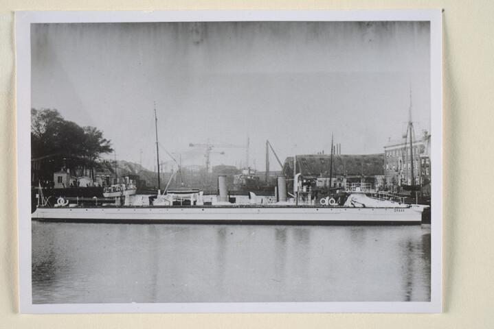 Het gouvernementsvaartuig 'Raaf' afgemeerd te Vlissingen, omstreeks 1889