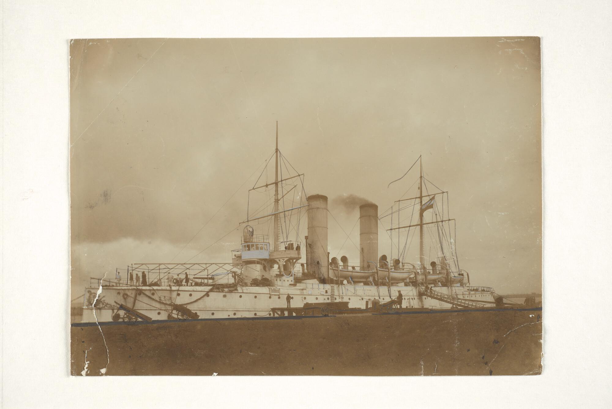 Het pantserdekschip Hr.Ms. Holland ligt afgemeerd aan het Nieuwe Diep (Den Helder).
