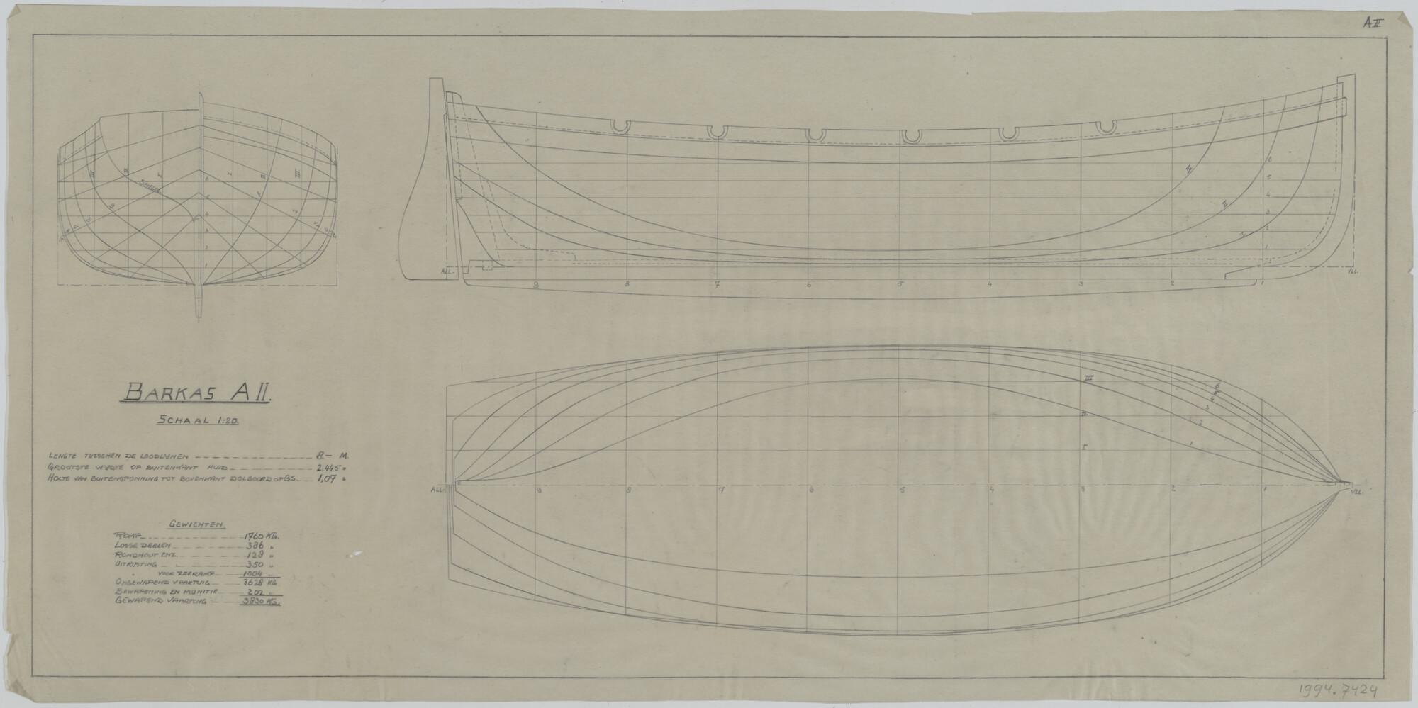 Lijnenplan van een A2-barkas