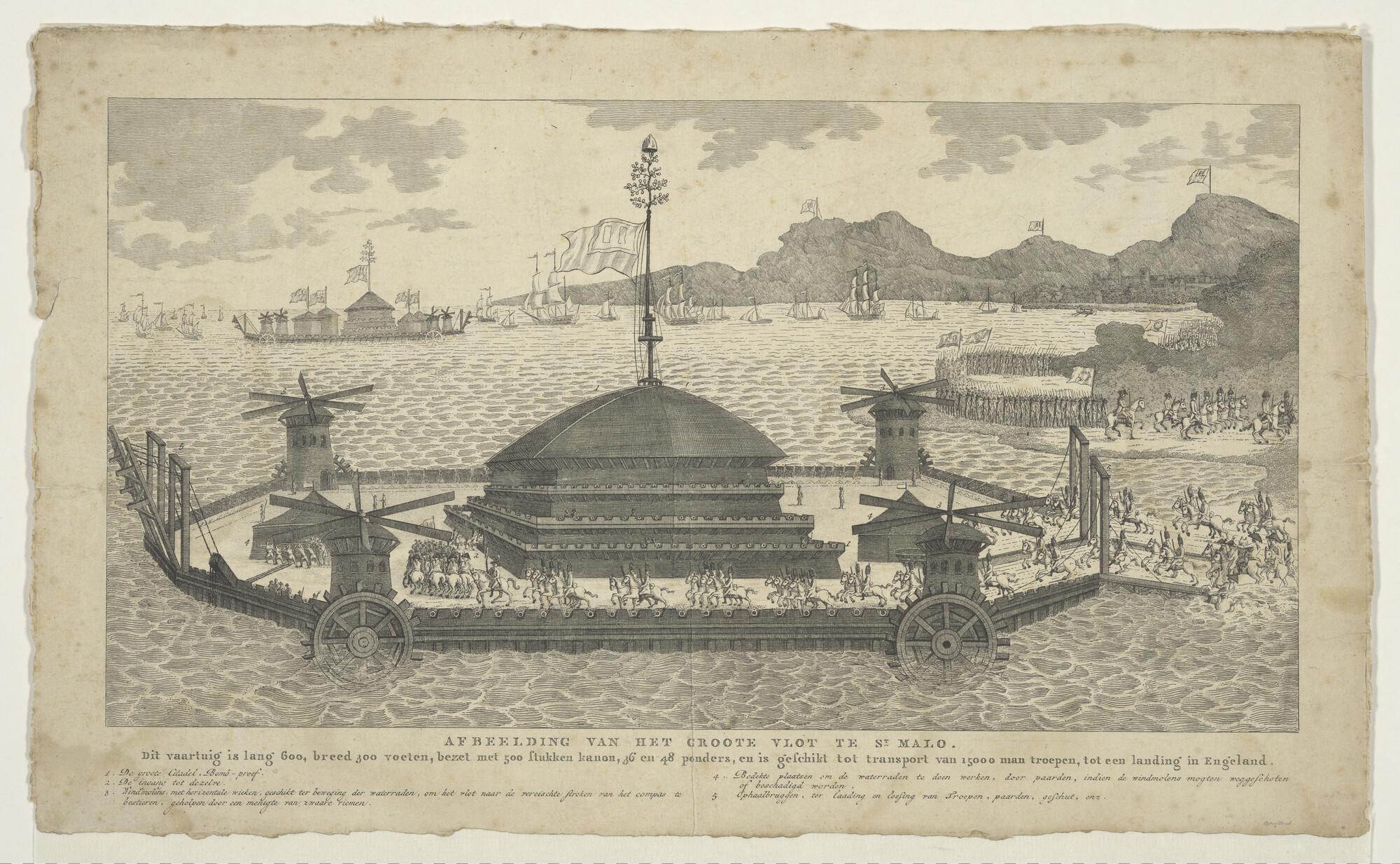 Het grote vlot te St. Malo voor het vervoer van Franse landingstroepen naar Engeland.