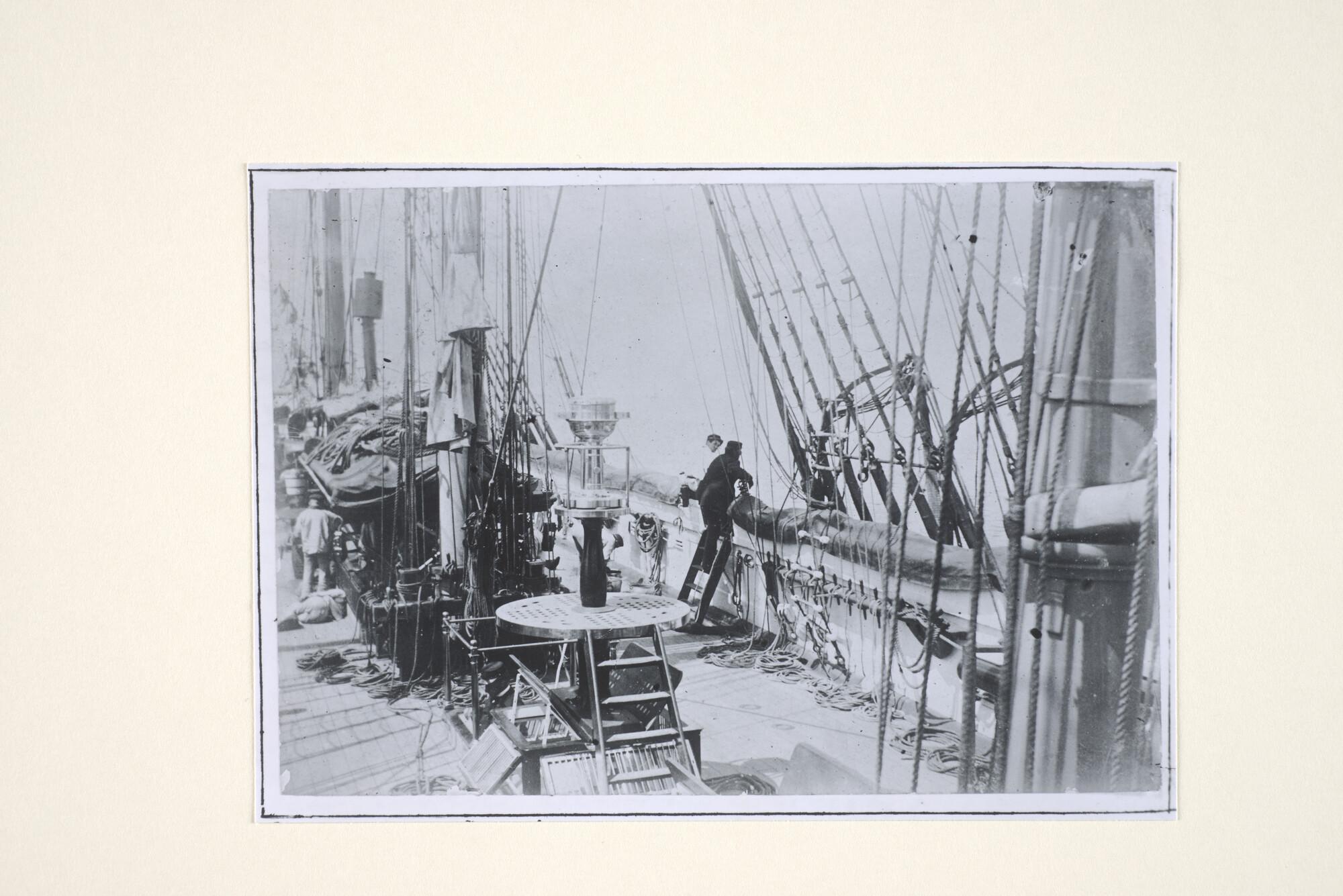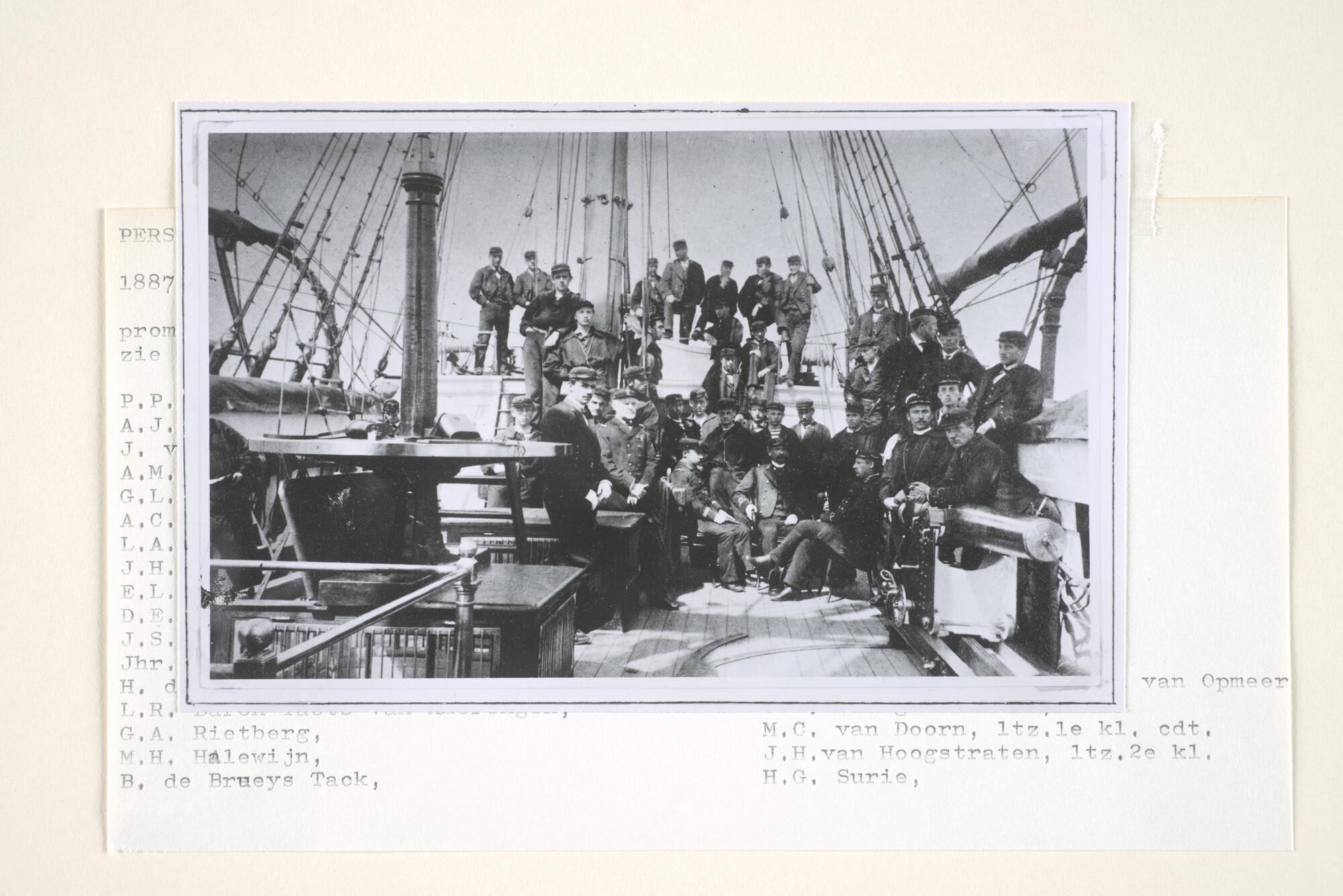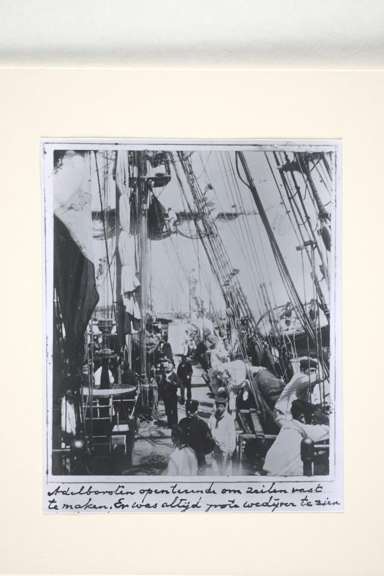 Reproductiefoto's uit een album: het korvet Hr.Ms. Nautilus op de Zuiderzee en het werk aan boord (inclusief een groepsfoto aan boord van het schip met adelborsten van het promotiejaar 1887).