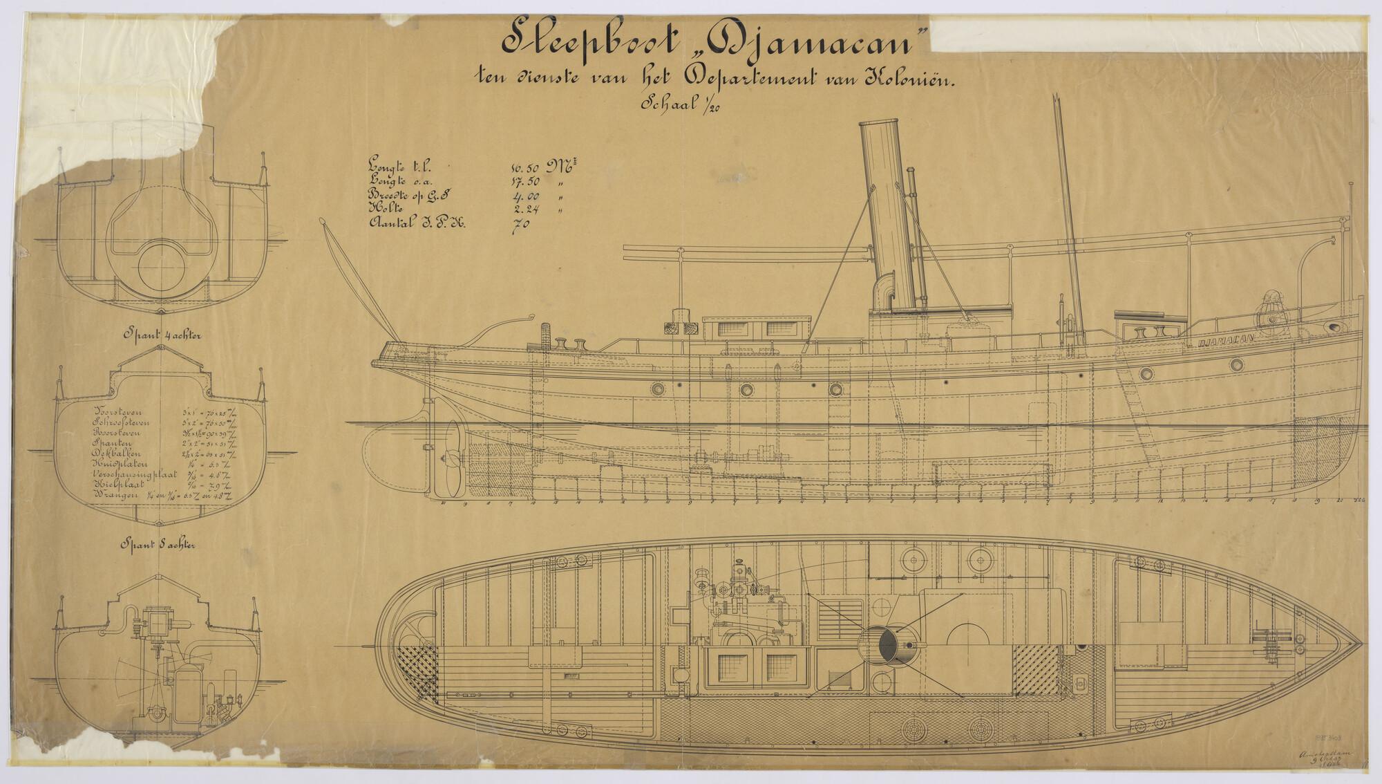 Algemeen plan van het stoomsleper "Djamacan" (schaal 1:20).