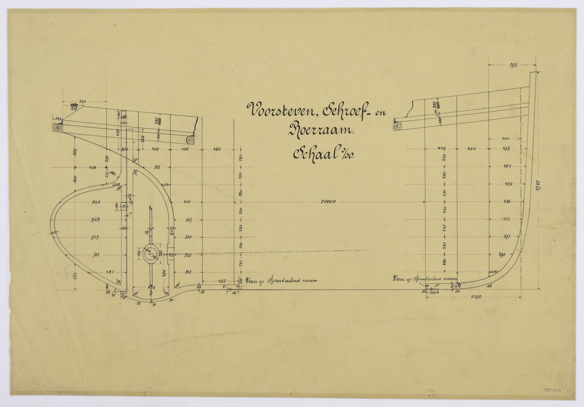 Voorsteven, schroef- en roerraam van een stoomsleepboot voor de magazijndienst van de Gemeente Amsterdam.
