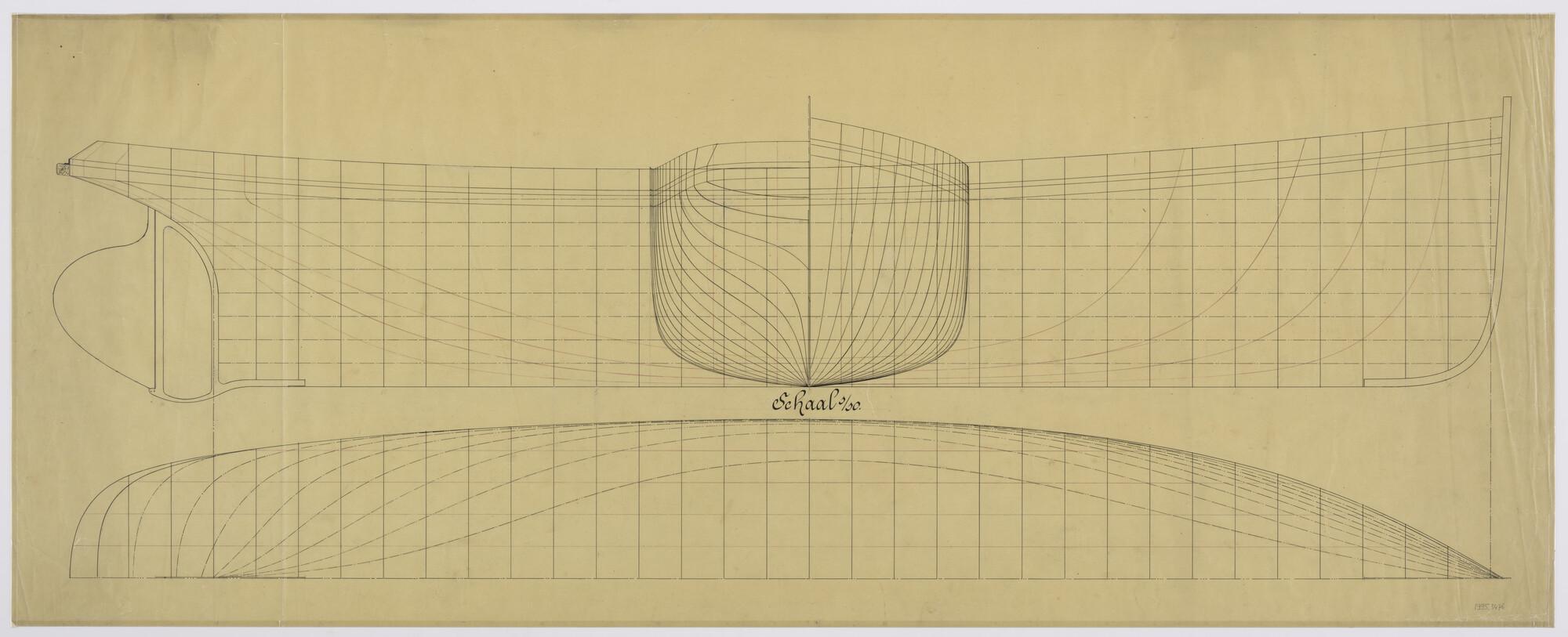 Lijnenplan van een stoomsleepboot voor de magazijndienst van de Gemeente Amsterdam.