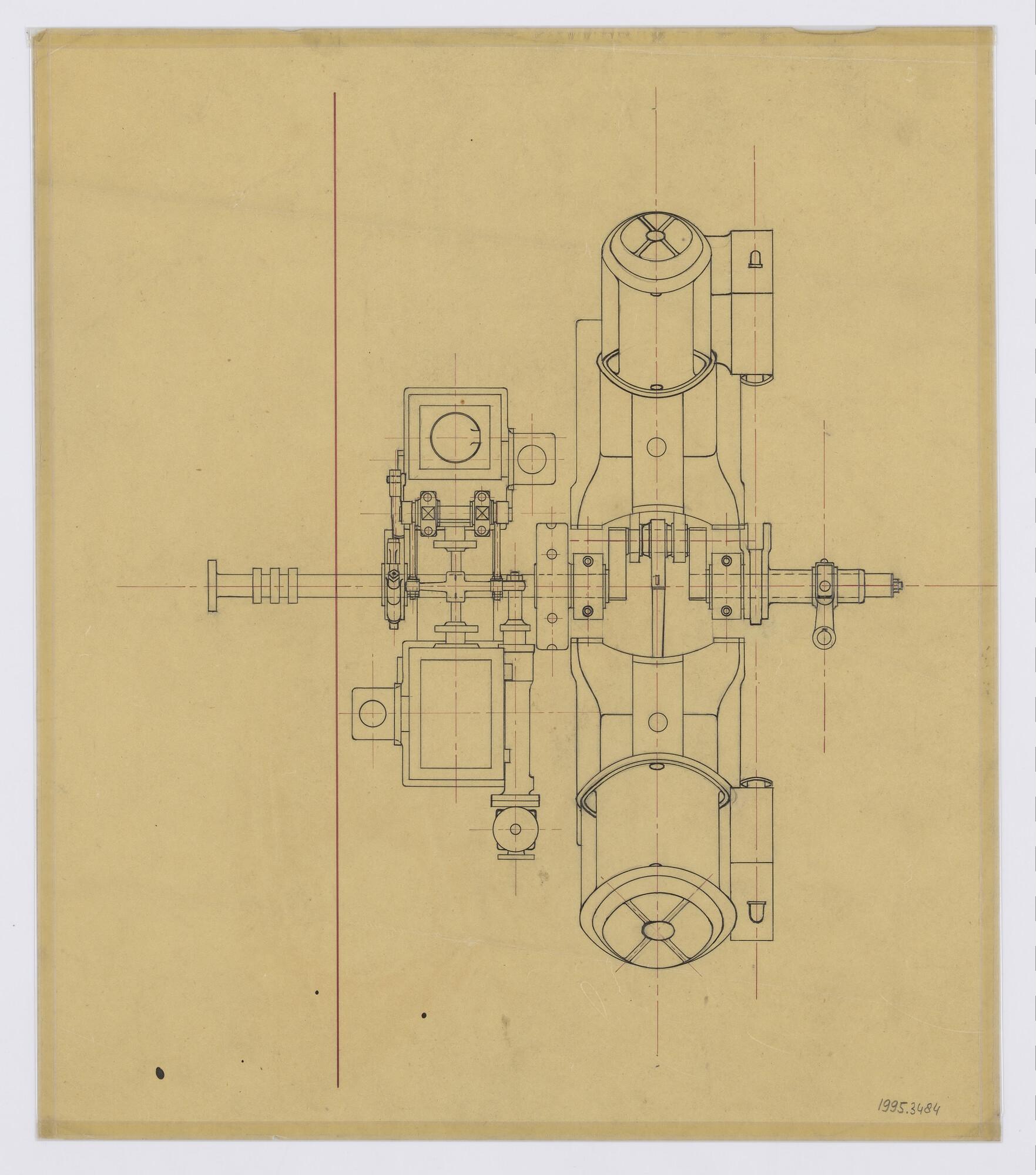 Bovenaanzicht hoofdmachine van stoomsleepboot voor de magazijndienst van de Gemeente Amsterdam