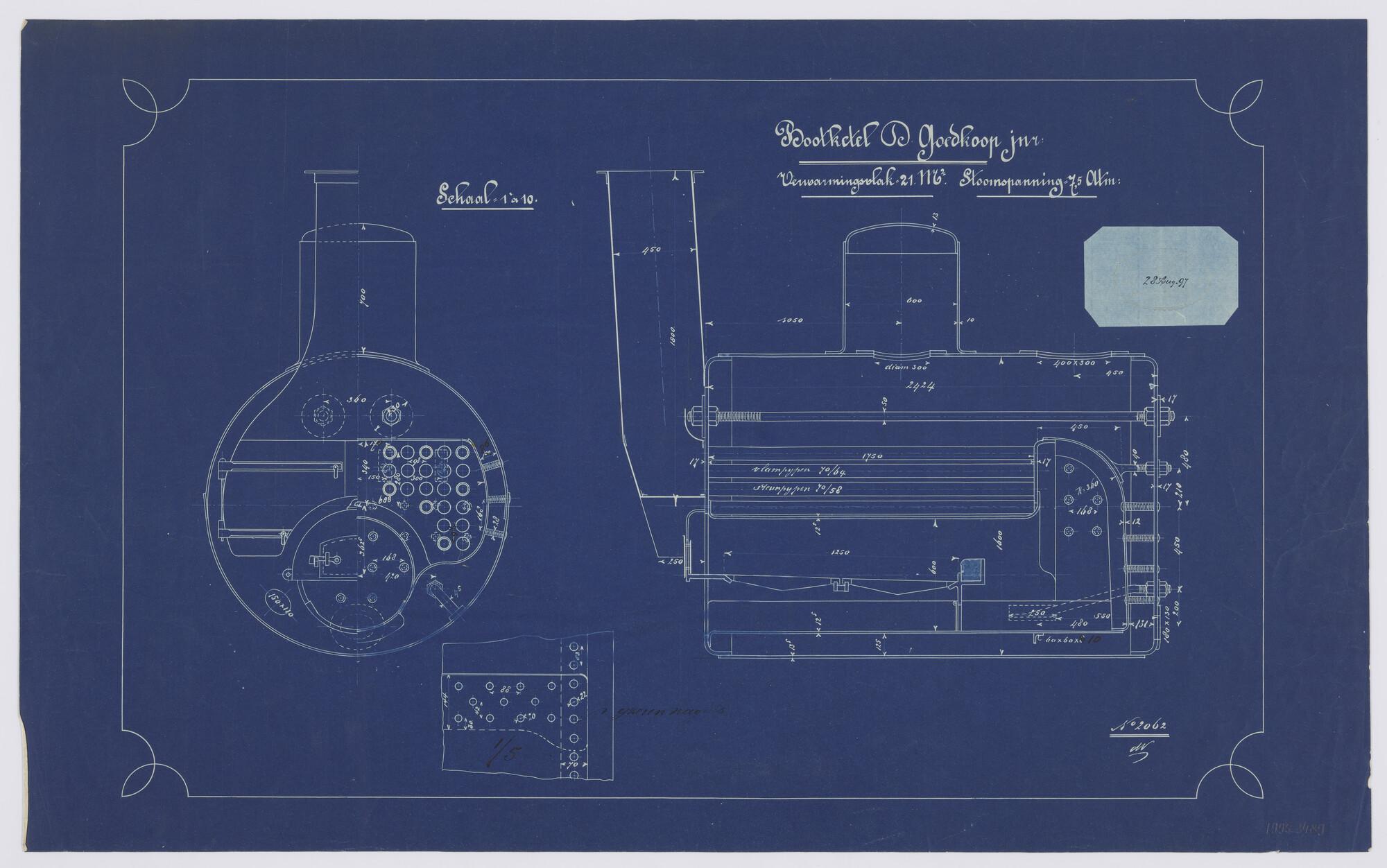 Stoomketel 21 m3 voor stoomsleepboot voor de magazijndienst van de Gemeente Amsterdam