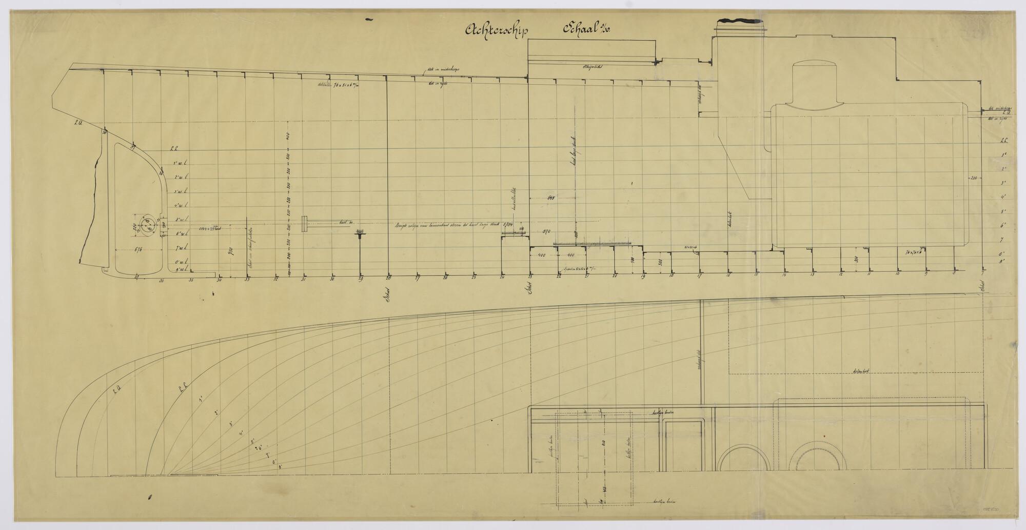 Lijnen achterschip en plaatsing ketel in het vrachtschip ss. 'Dokkum'