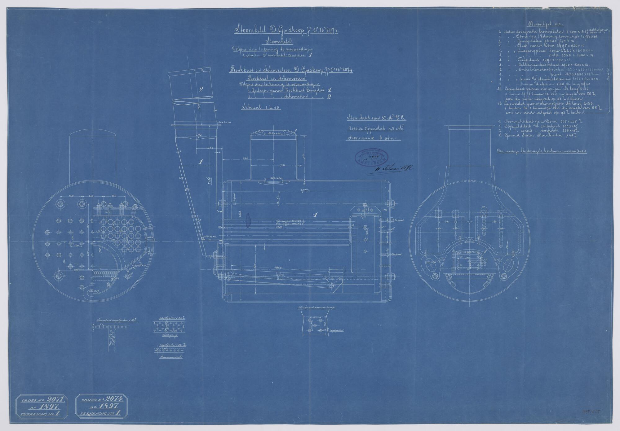 Stoomketel 32 m² voor vrachtschip ss. Dokkum