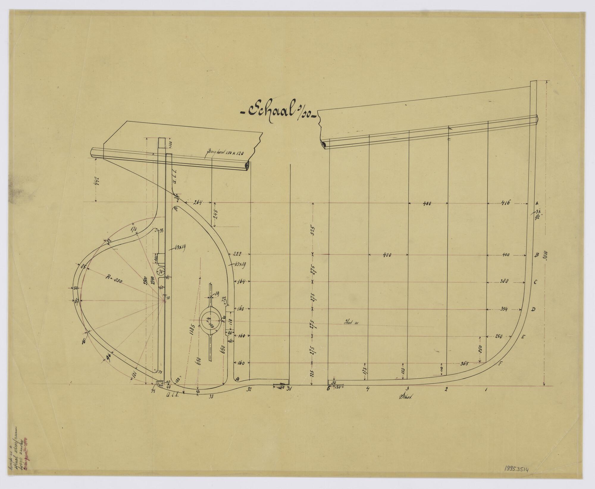Contour voor- en achtersteven van de stoomsleepboot 'Cornelis Hubertus'