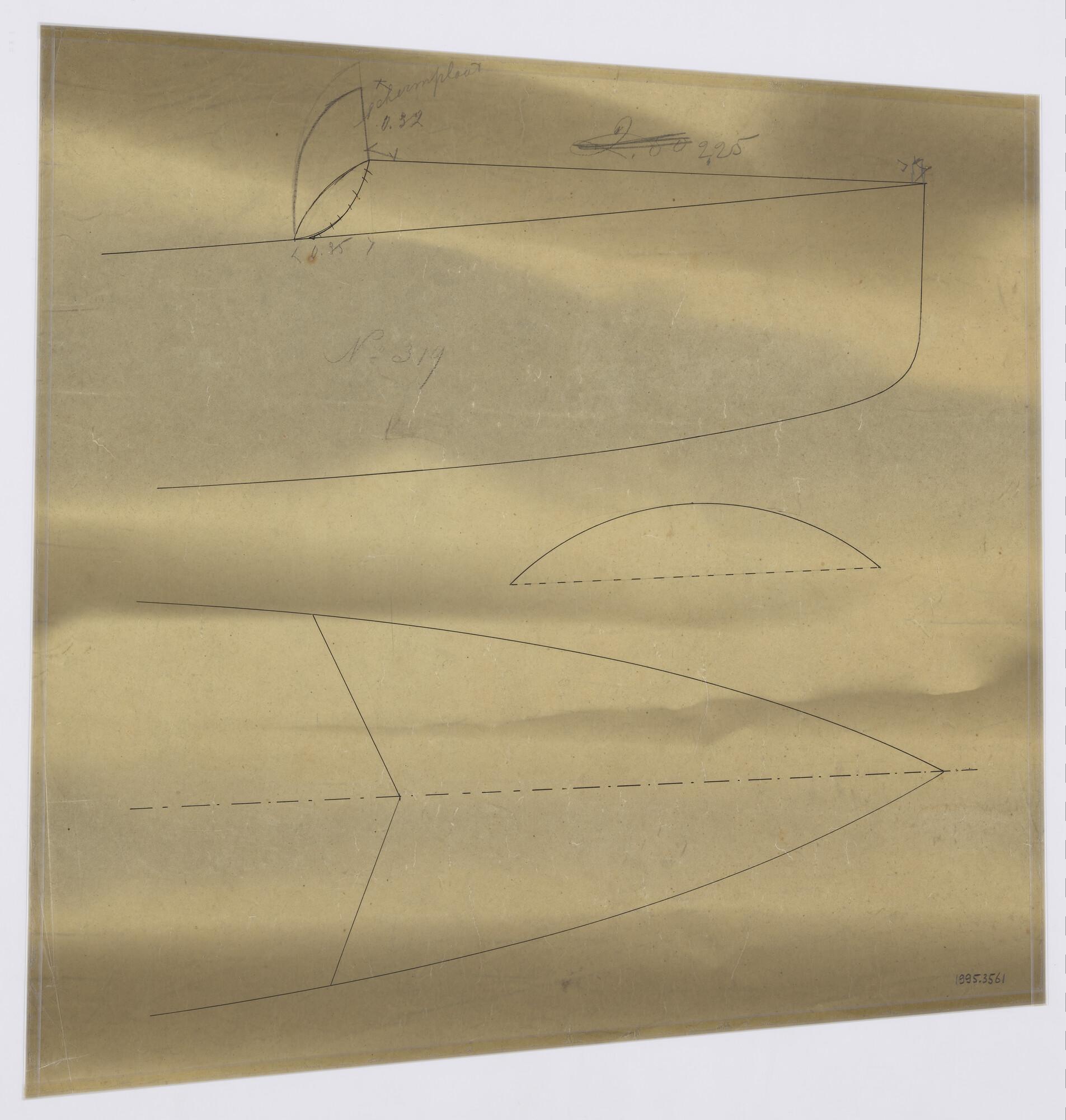 Lijnenplan kap op voorschip van de stoomsloep Strekdam (?), in gebruik als 'consignatieboot' voor de Kroningsplechtigheden.