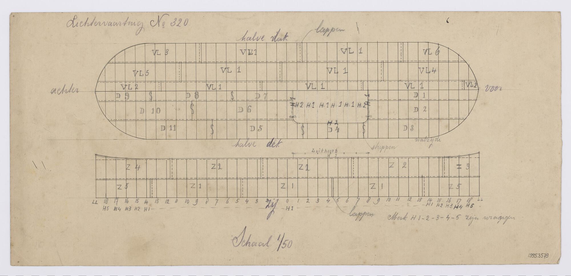 Plaatindeling van een lichter.