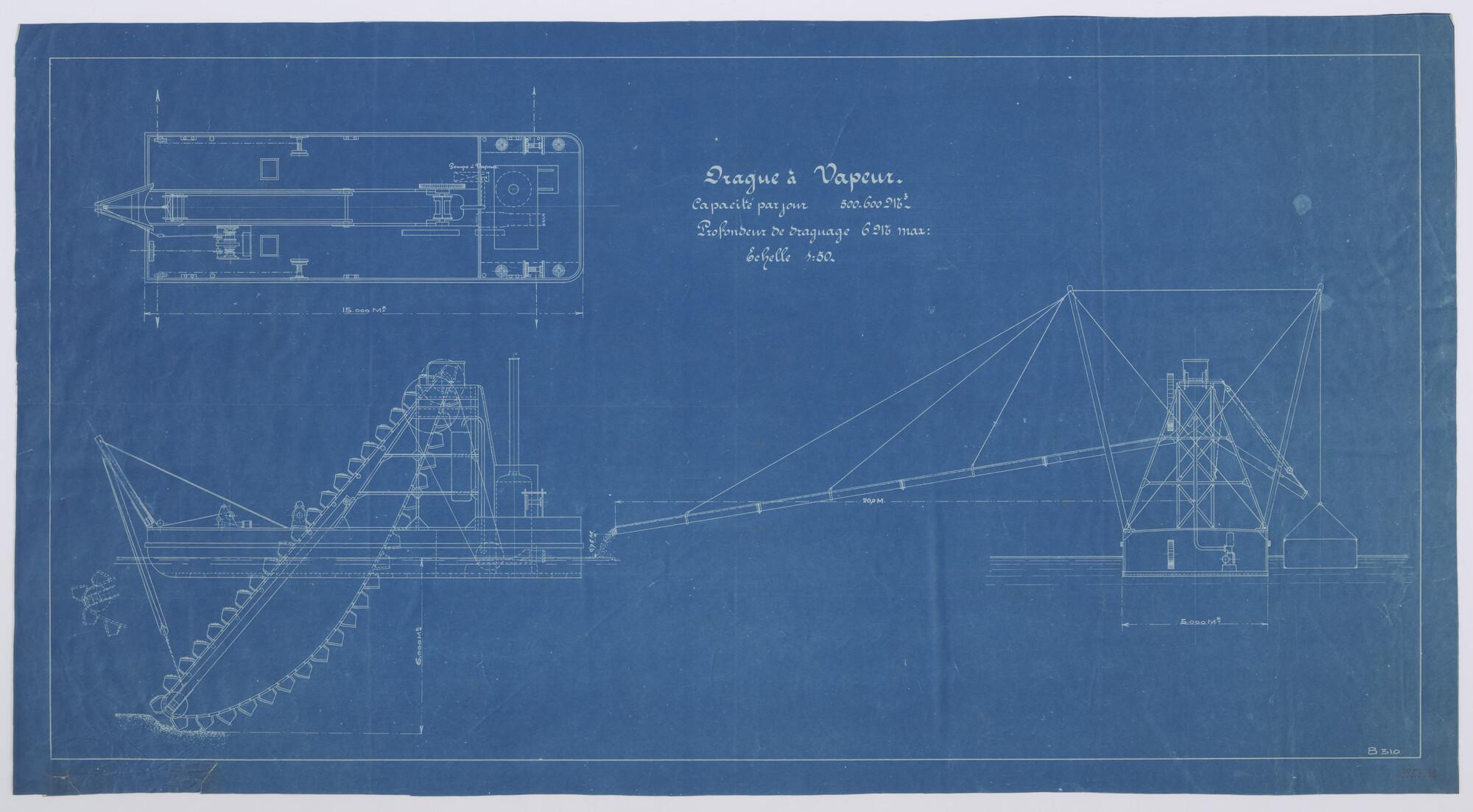 Algemeen plan van een baggermolen (schaal 1:50).