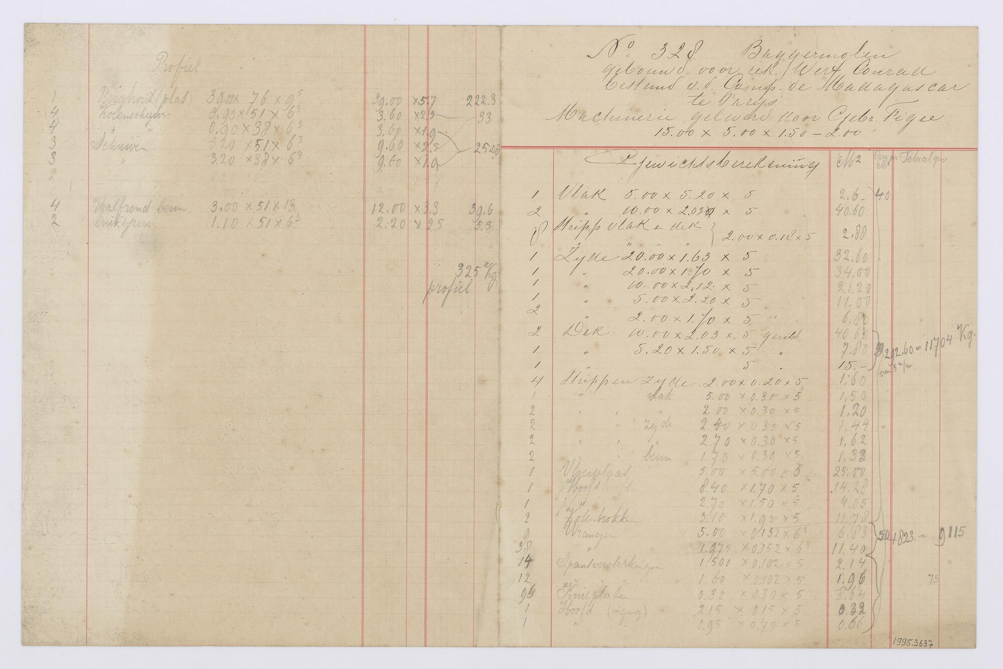 Gewichtsberekening plaat, hoekstaal en profiel van een baggermolen.