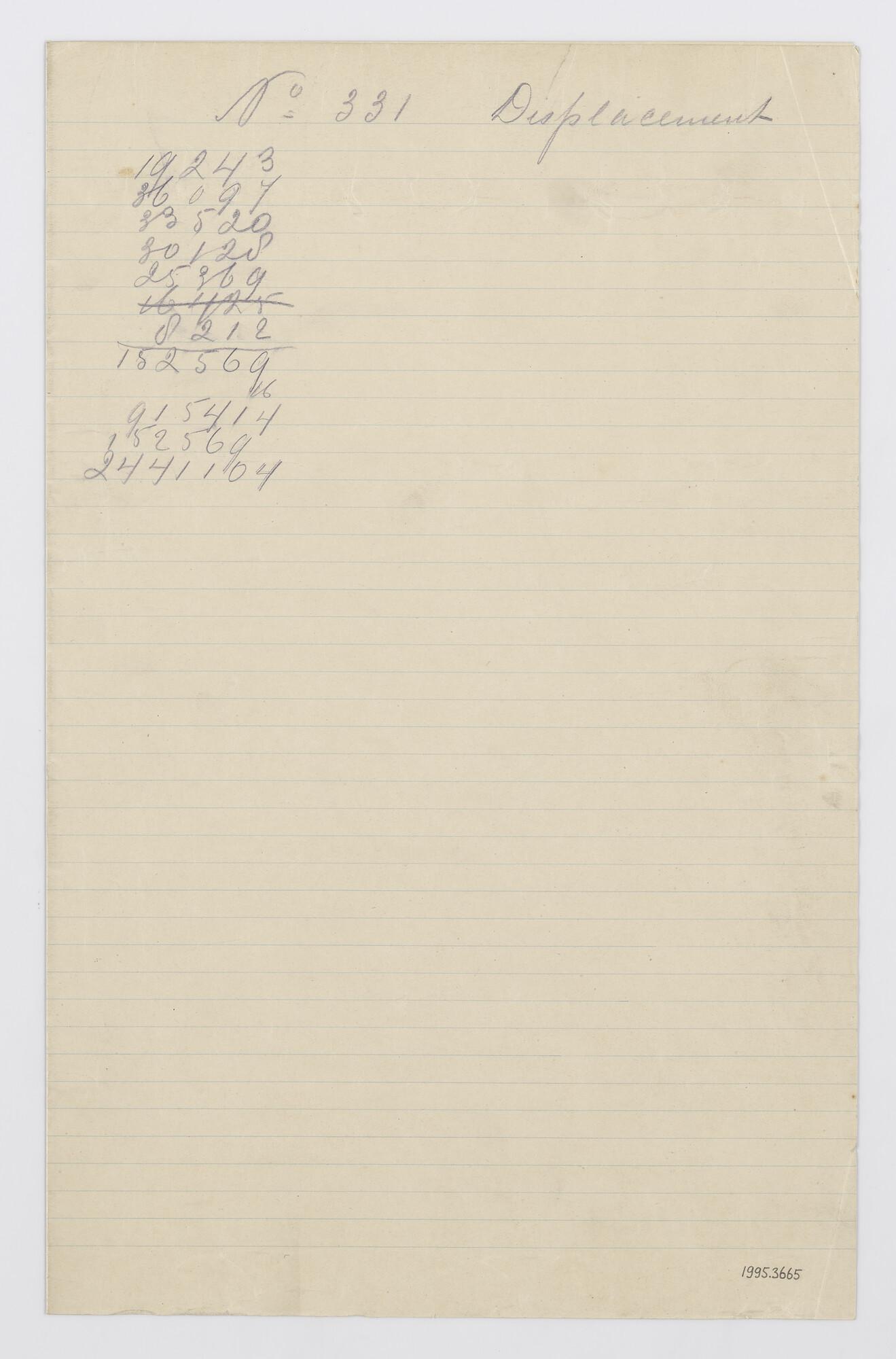 Berekening waterverplaatsing van een directieboot voor de Nederlandsche Fabriek van Werktuigen en Spoorwegmaterieel.