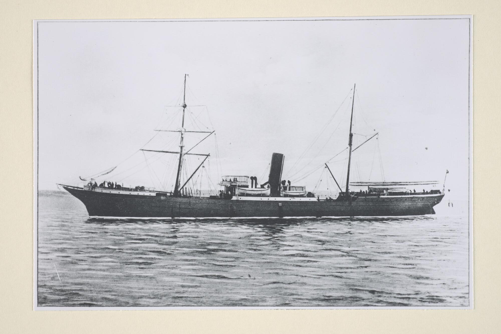 Het passagiersschip ss. Drenthe van de Rotterdamsche Lloyd, bakboordaanzicht. [Reproductiefoto]