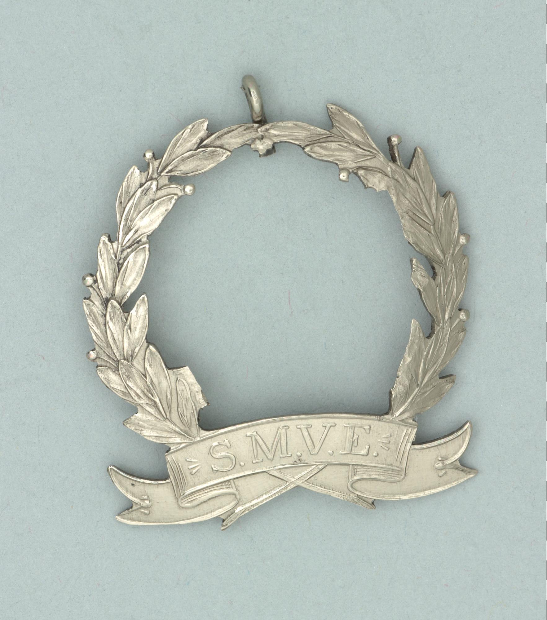 Draaginsigne van de Scheepstimmermansvereniging 'De Eendracht' uit Amsterdam, in de vorm van een lauwerkrans.