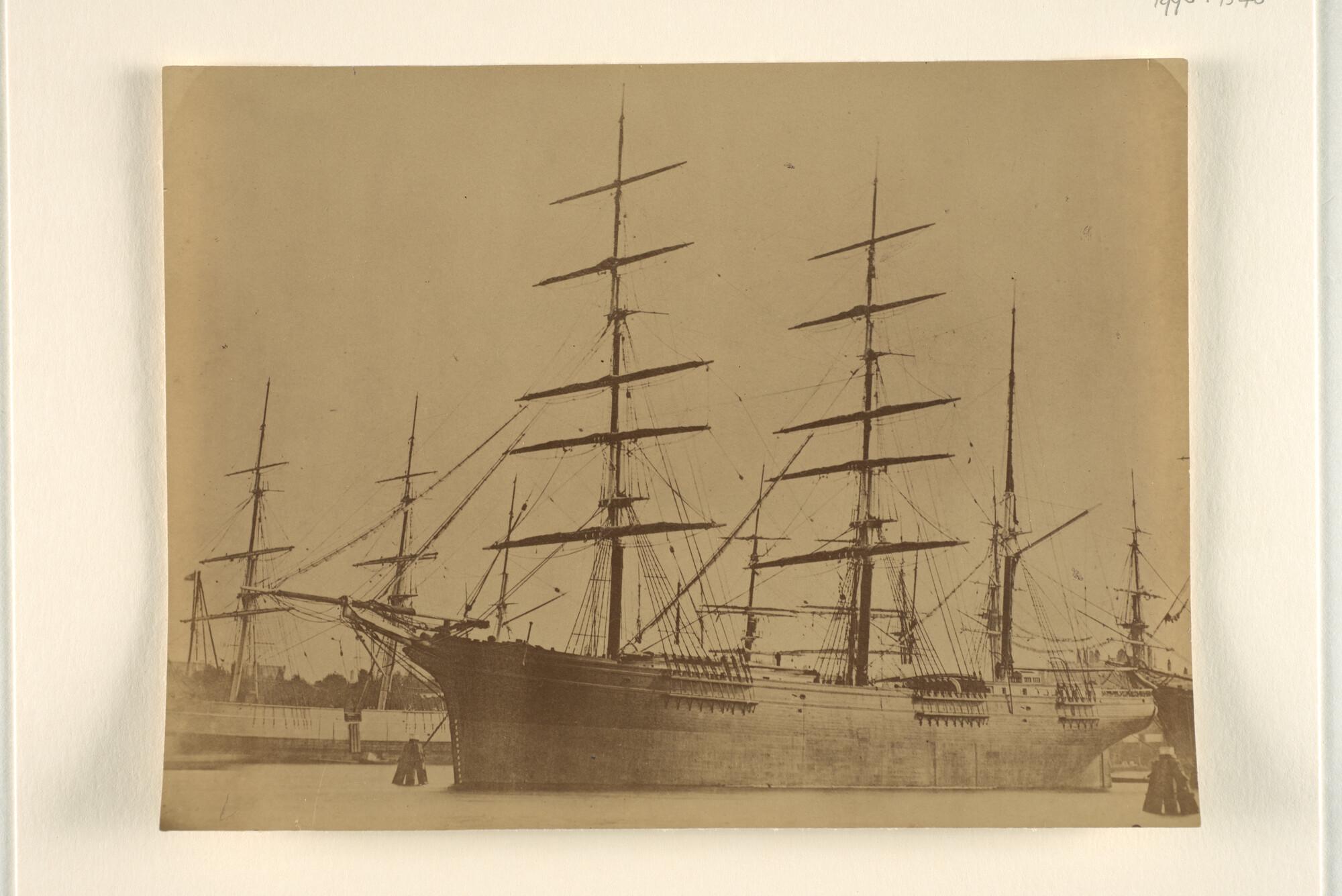 De driemast houten bark Cathérine (ex- Nancy) eigendom van F.F. Groen ligt afgemeerd te Amsterdam.