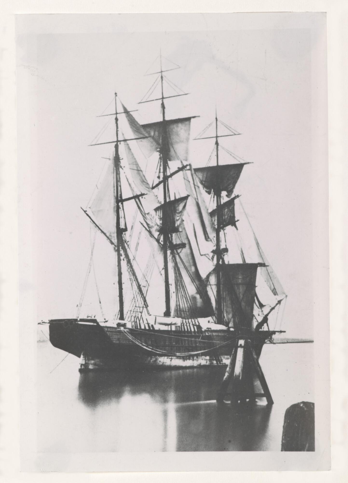 Reproductiefoto van de clipper 'Kosmopoliet ', eigendom van de Gebroeders Blussé, in 1854 gebouwd bij de werf van C. Gips & Zn