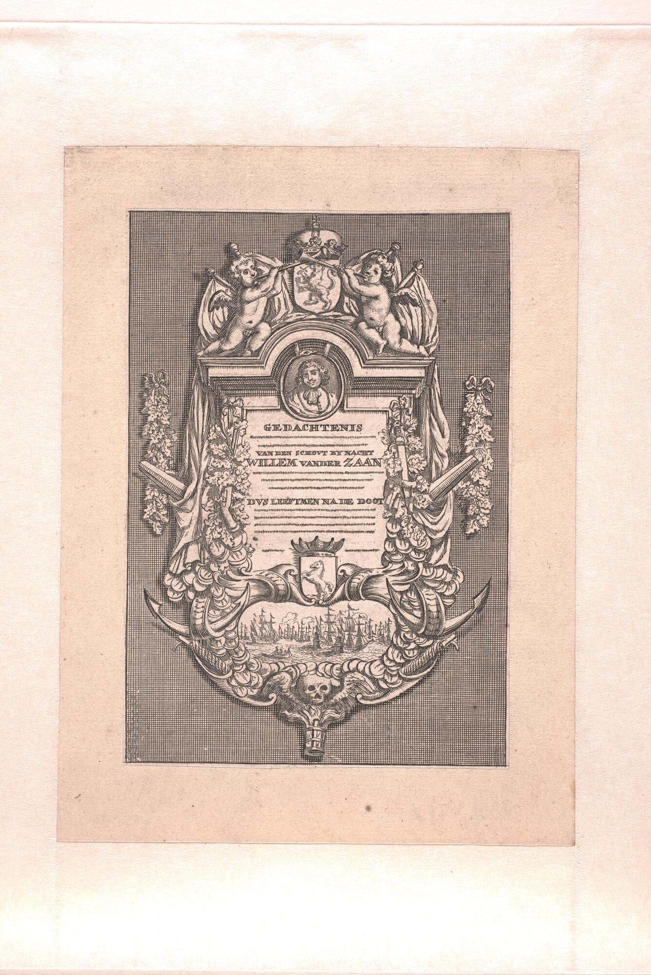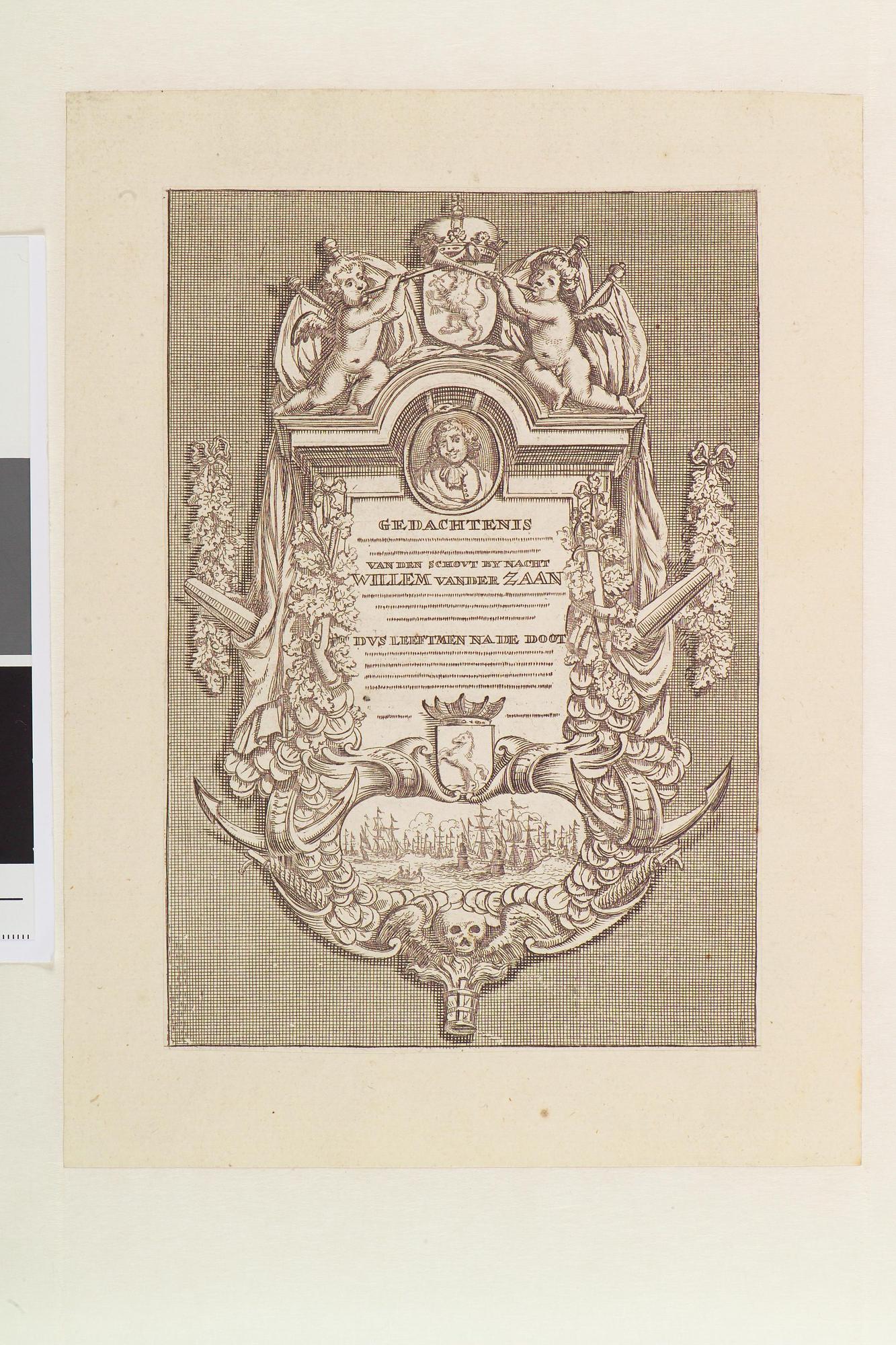 Grafmonument van Willem van der Zaan. Met het opschrift: Gedachtenis van den schout by nacht Willem van der Zaan dus leeft men na de dood.