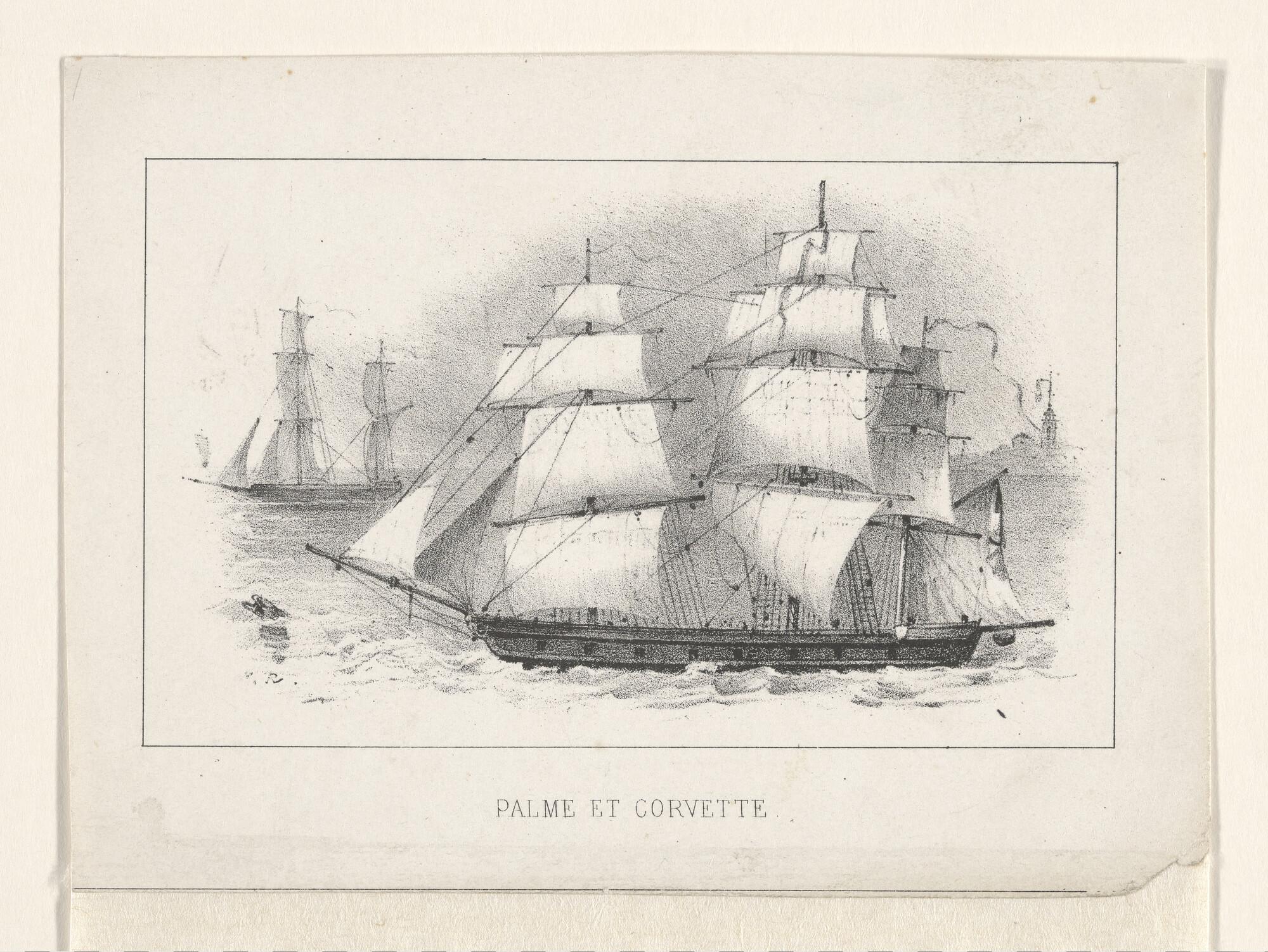 Prent nr 4 uit een serie van 8: een 'palme' en een korvet