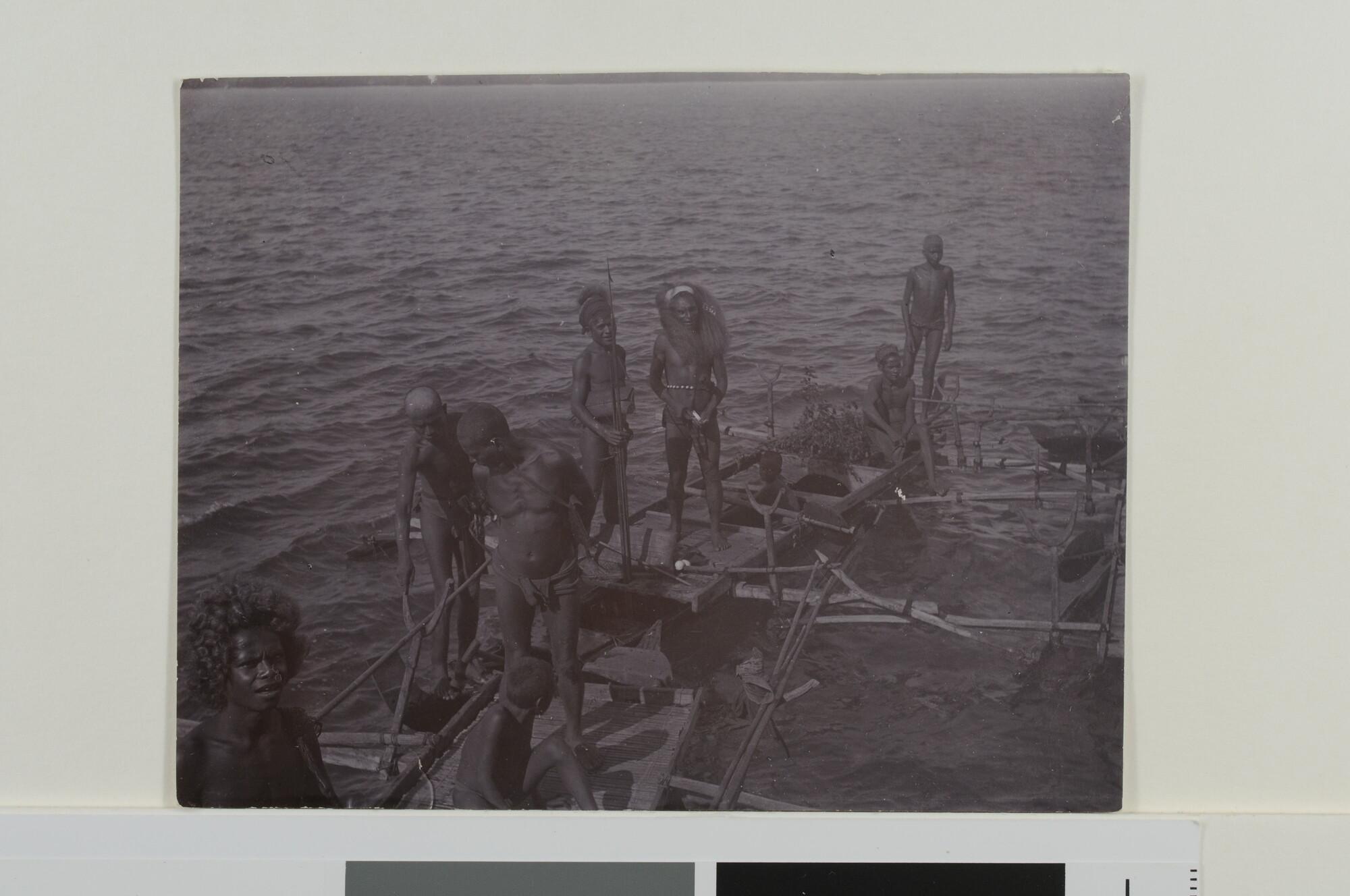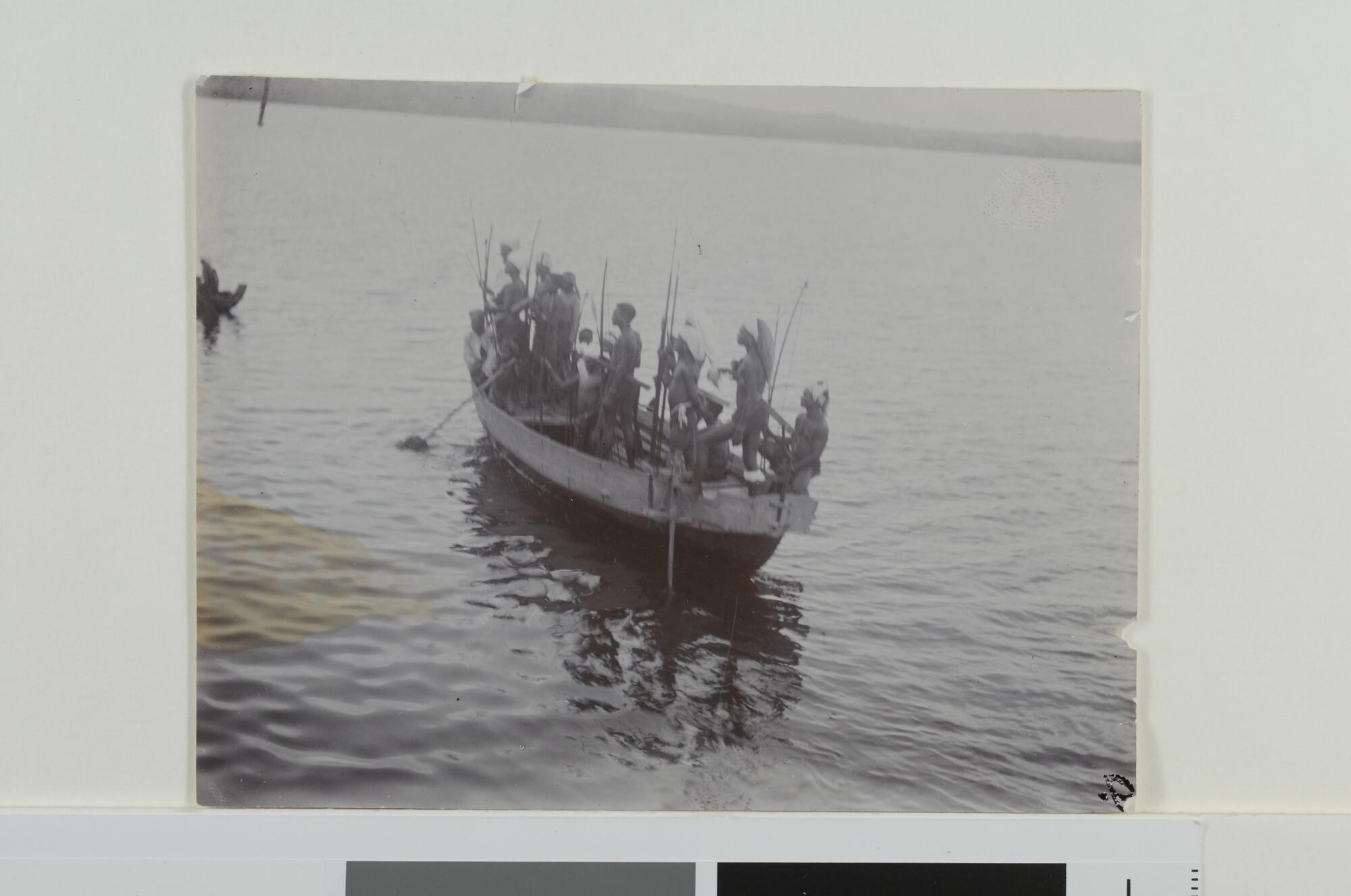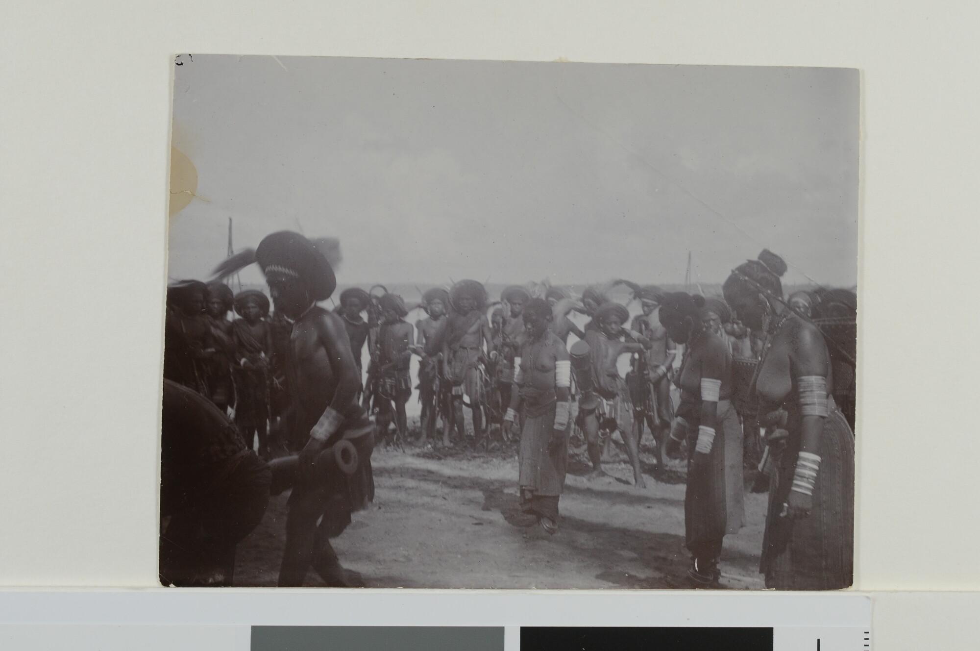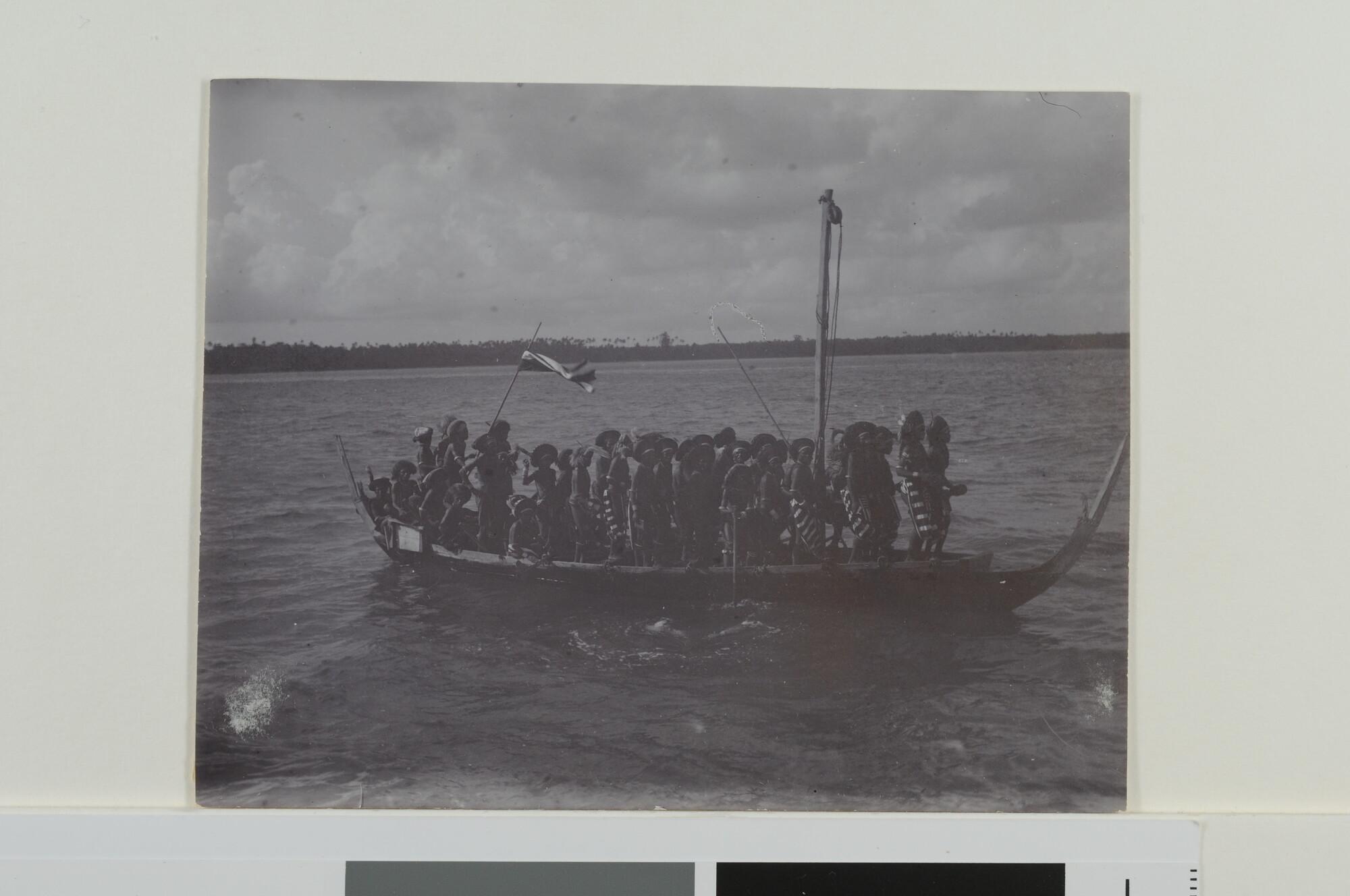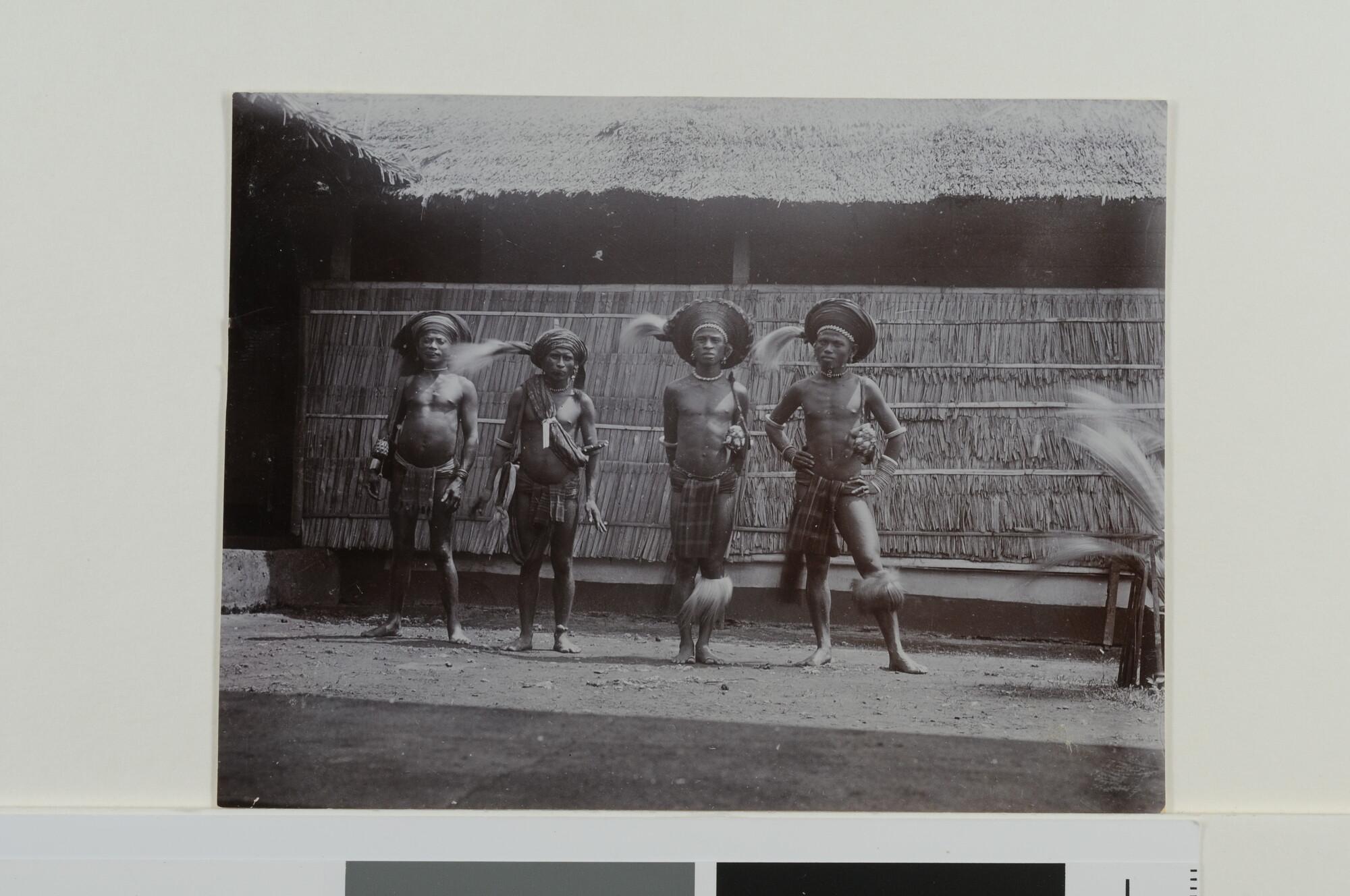 Foto's van het onthaal van de resident door de bewoners van de Tanibar-eilanden bij Adaoet voor het tekenen van de 'vrede'.