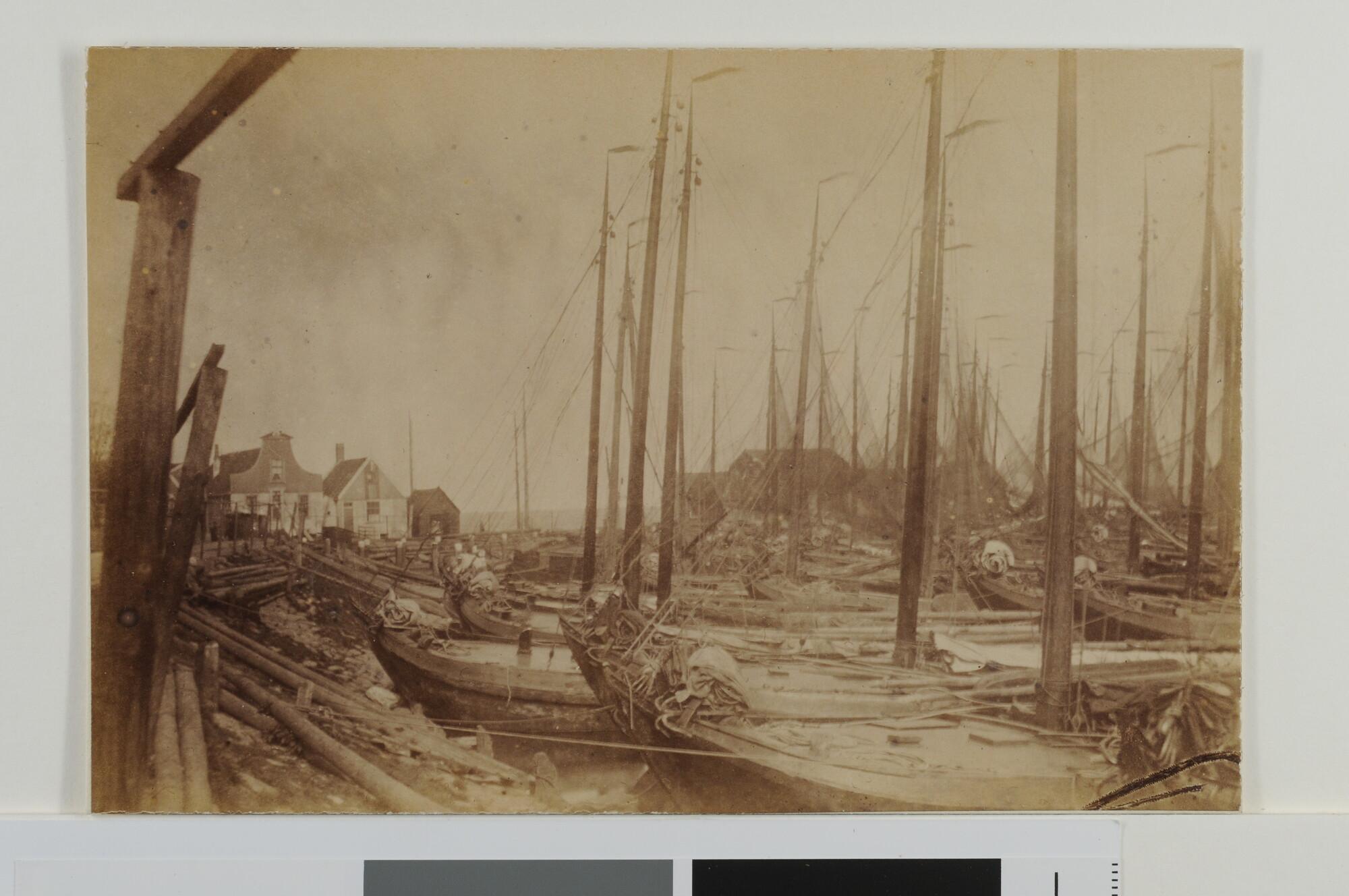 Volendammer botters liggen afgemeerd in de haven van Volendam, omstreeks 1880