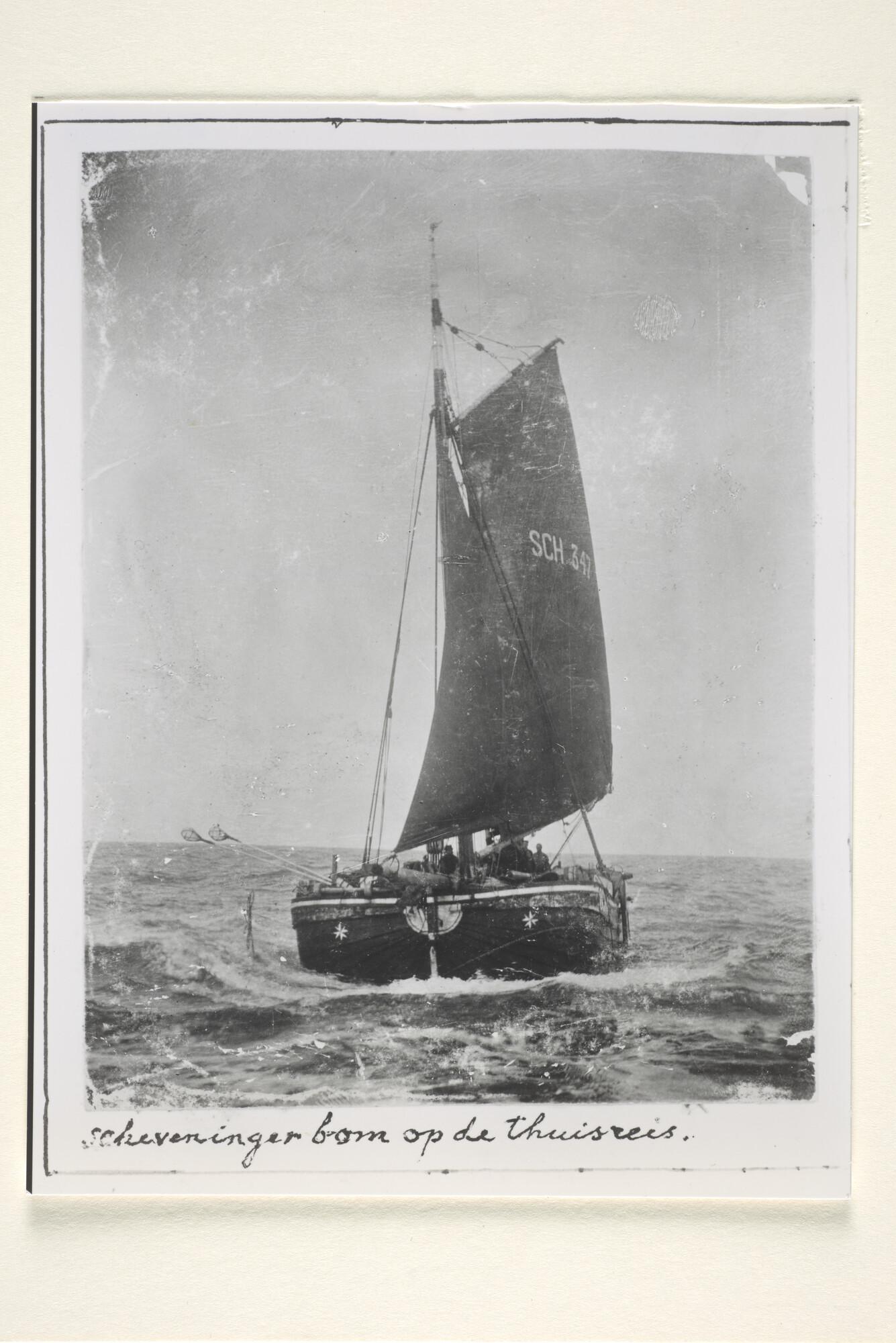 De Scheveningse bomschuit "SCH 347" keert terug naar Scheveningen. [Reproductiefoto]