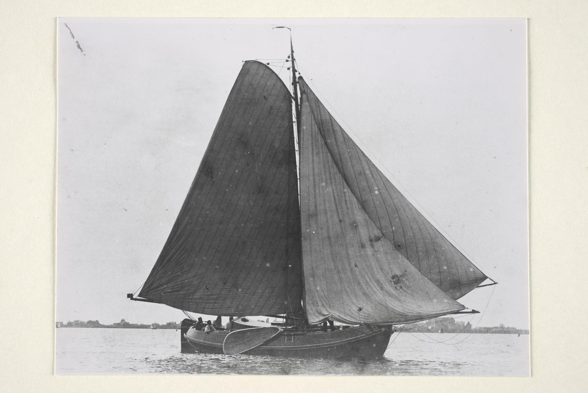 een boeier onder vol zeil varende op het Brasemermeer, 1892. [Reproductiefoto]