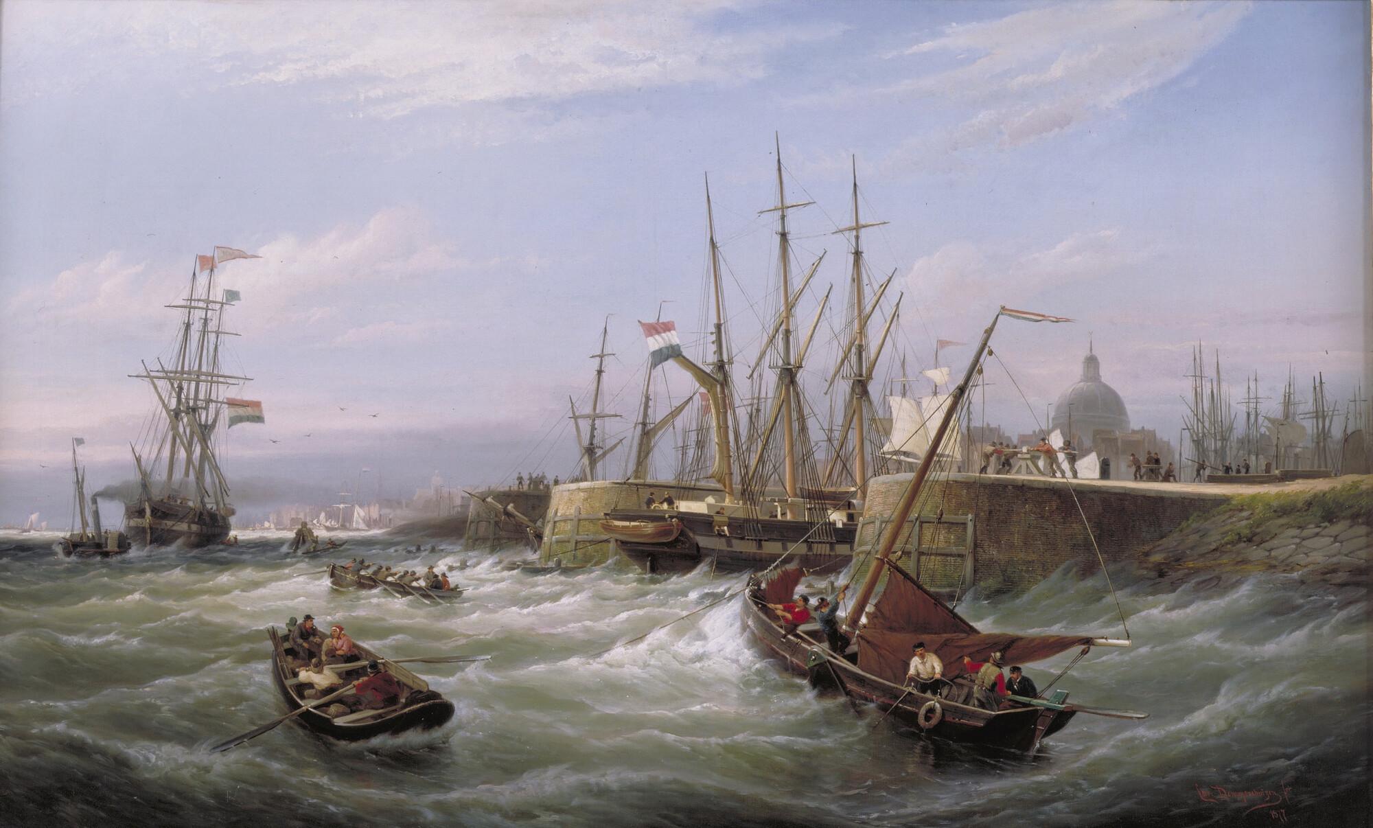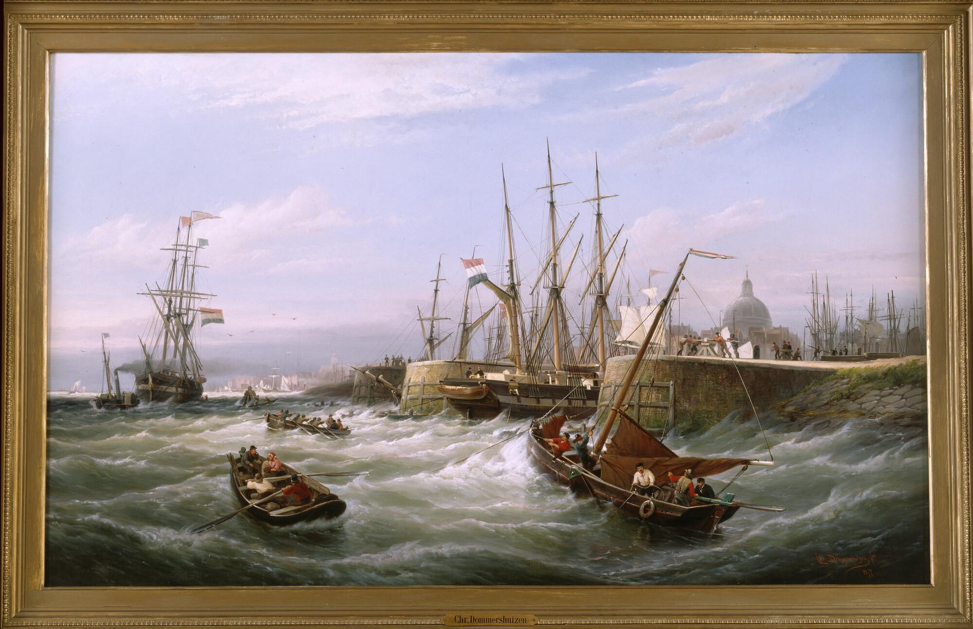 Scheepvaart op het IJ ter hoogte van de Westerdokssluis